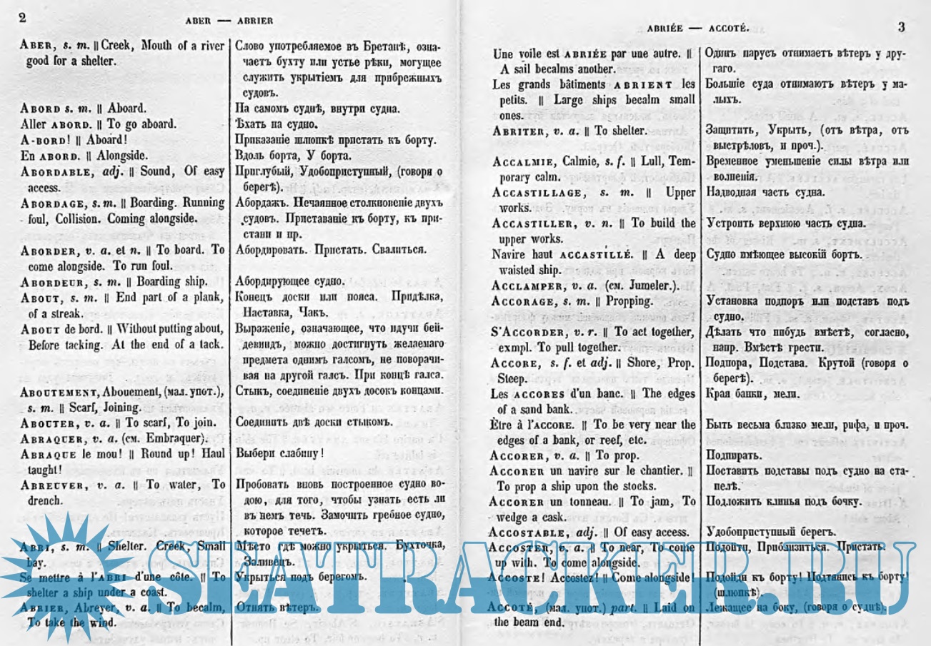 Словарь морских слов и речений парусного и пароходного флота. Часть французская
