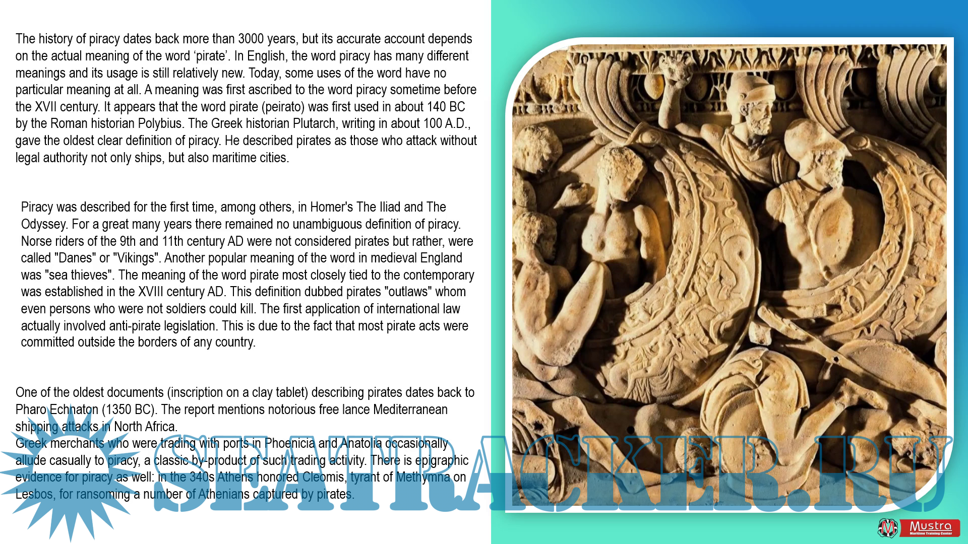 Due to increased marine piracy activates in the world there is a need for higher seafarer awareness and preparedness if it occurs. When and how to timely act, how to protect yourself and your crew will be shown in this course. In some cases during pirate attacks one wrong gesture can lead to fatal outcome.