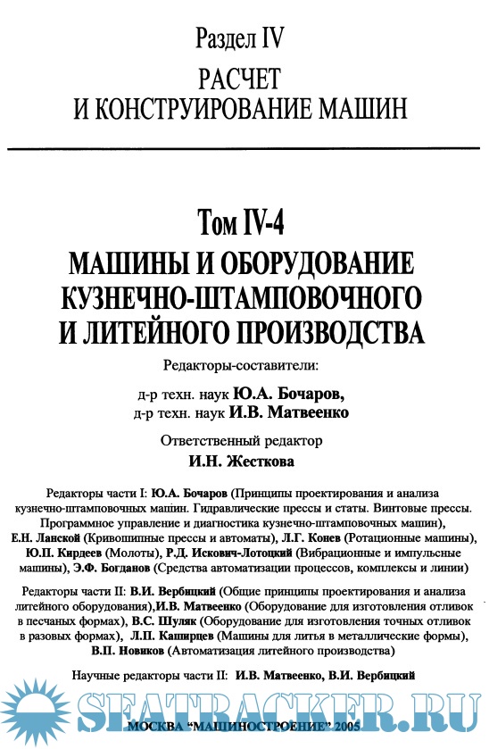 Фролов К.В. - Машины и оборудование кузнечно-штамповочного и литейного производства (МЭ, том IV-4) - 2005.djvu