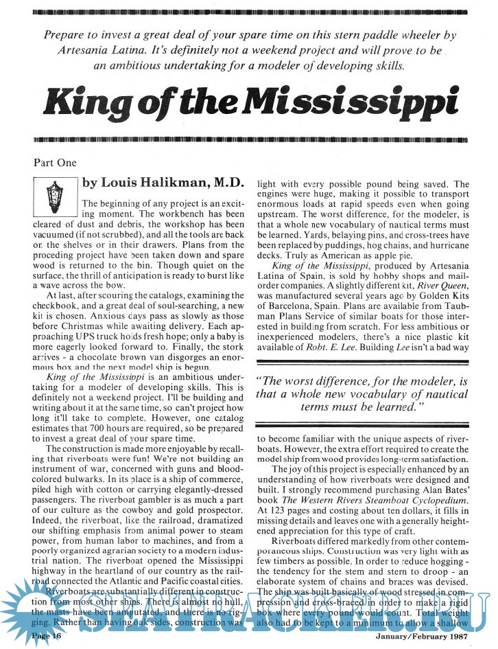 Year: 1987 Language: english Author: Scottie Dayton (Editor) Genre: Periodical (magazine) Edition: 1987-01 Format: PDF Quality: Scanned pages Pages count: 100 Description: Seaway is the home port for Seaways Ships in Scale magazine, the leading workshop and research magazine for the ship modeler. In the magazine we explore all levels of modeling experience, all types of ships, all kinds of models, all historical eras and all construction materials