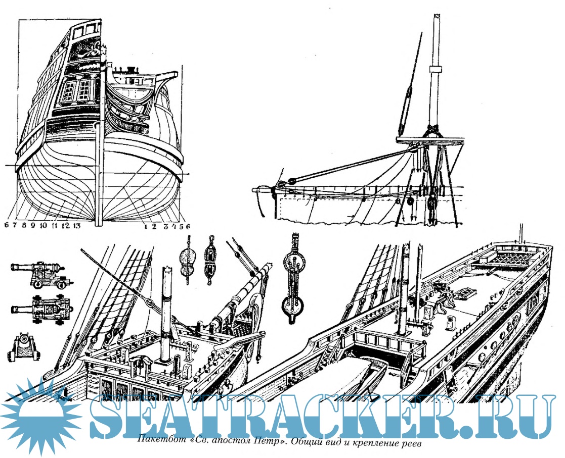 Чертежи пакетбота Беринга "Святой Пётр" 1737 год