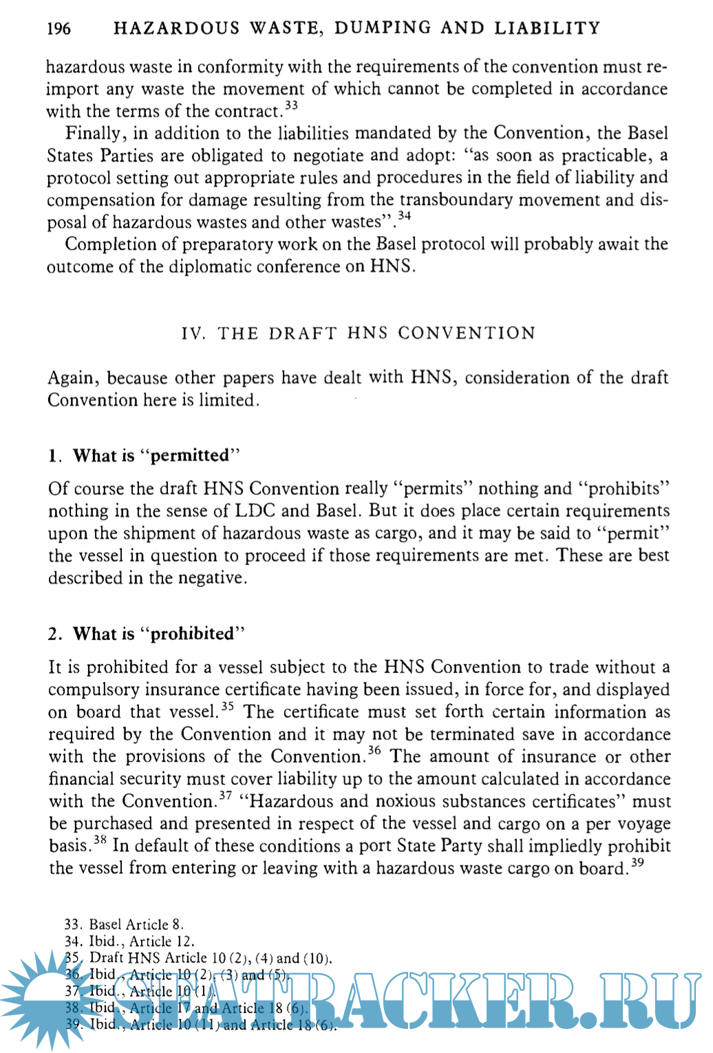 Year: 1993 Language: english Author: Colin de la Rue Genre: Textbook Publisher: CMI Format: PDF Quality: OCR without errors Pages count: 283 Description: Despite widely-accepted international systems of liability for pollution damage to the marine environment, uniformity is far from being achieved. This book is based on the papers delivered at the CMI seminar on liability for pollution damage. The purpose of the seminar was to take stock of the legal position worldwide as a prelude to discussions on unification of laws relating to the admissibility and assessment of claims. Among the main issues addressed are - oil pollution prevention and response, the effectiveness of present compensation methods, the importance of recent protocols to the compensation conventions, the ramifications of OPA 90, the underwriting of oil pollution risks and the need for an international convention on hazardous and noxious substances. These issues are covered by a broad range of international experts.