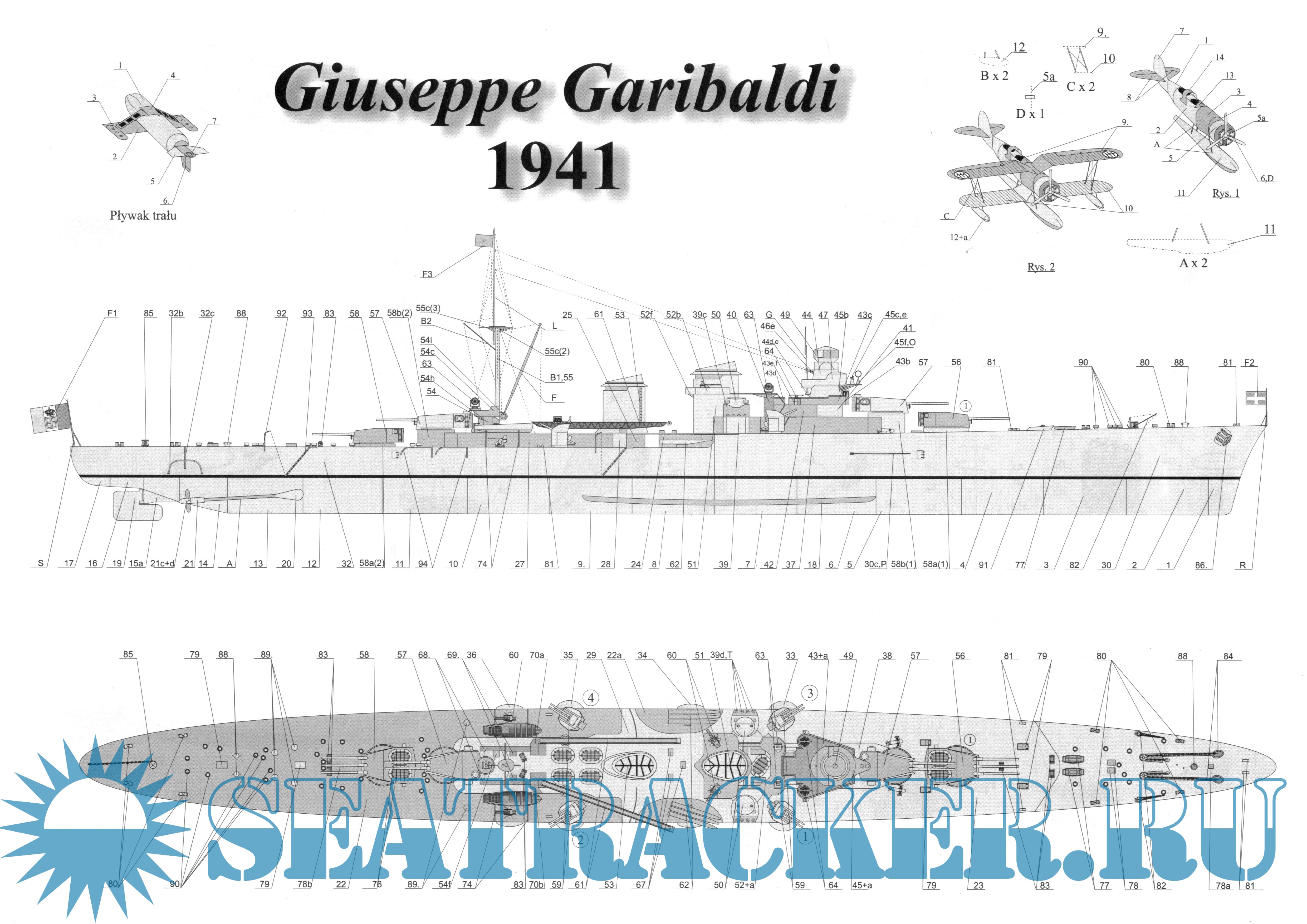 Описание: 14 листов цветных выкроек и инструкций для изготовления бумажной модели лёгкого крейсера Giuseppe Garibaldi 1941 год (Италия) в масштабе 1:200