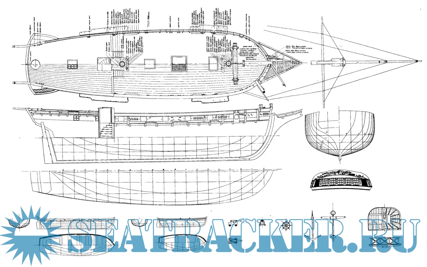 Чертежи архангельского 12-пушечного гукора "Кроншлот" 1736 год - Калмыеов и Шлычков…