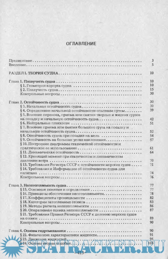 Описание: В краткой описательной форме изложены сведения об устройстве судна, закрепляемые впоследствии учащимися во время плавательной практики. Более подробно излагаются разделы, посвященные теории судна. Отличительной особенностью данной книги является эксплуатационная судоводительская направленность. Особое внимание уделено явлениям, характерным для работы судна в реальных морских условиях, т. е. борьбе за непотопляемость судна, плаванию в условиях стесненных акваторий, плаванию на взволнованном море, в том числе на попутном волнении. В объеме и направленности, нео6ходимом инженерам-судоводителям, излагаются вопросы реверсирования судов, управляемости, качки.