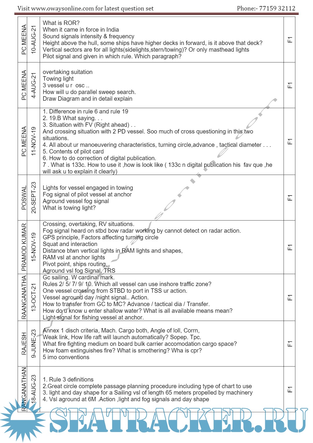 Description: 2nd Mate MMD Orals Exams Surveyor Question Set Mumbai.Question set arranged in the order Functions / surveyors / Dates.