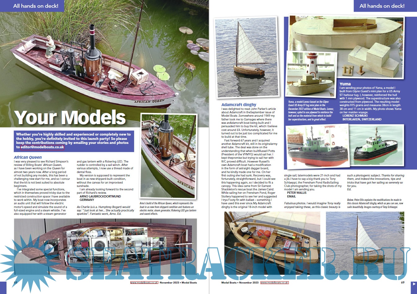 Year: 2023 Language: english Author: Lindsey Amrani (Editor) Genre: Periodical (magazine) Edition: 2023-11 Format: PDF Quality: eBook Pages count: 92 Description: Model Boats magazine is a practical and informative read for those with a love for the hobby. It covers the latest news and views from the various clubs and associations around the country, useful hints, tips and step by step guides for those interested in the art of constructing a model boat as well as tests and recommendations of new boats and tools. Floating along behind these are great special features examining in depth different models from narrowboat to destroyer!