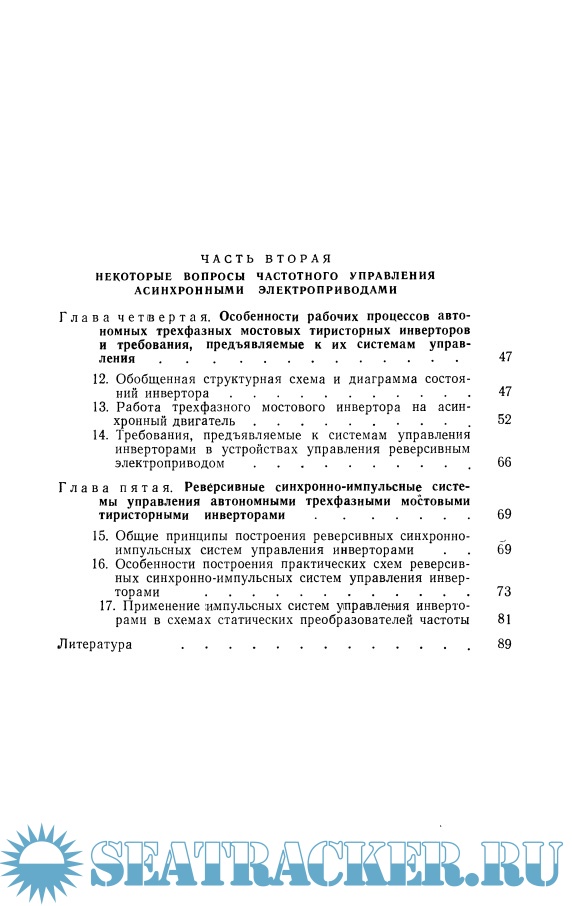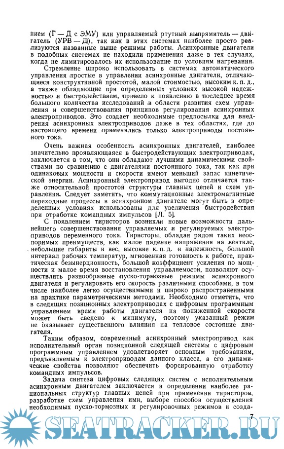 Год выпуска: 1967 Язык: русский Автор: В. А. Шубенко и др. Жанр: Техническая литература Издательство: Энергия Издание: Библиотека по автоматике. Выпуск 237 Формат: DjVu Качество: Отсканированные страницы Количество страниц: 98 Описание: Книга посвящена некоторым направлениям в развитии управляемых тиристорных асинхронных электроприводов. Изложены принципы построения тиристорных силовых следящих асинхронных электроприводов с цифровым программным управлением, методика расчета необходимых характеристик и параметров позиционных следящих систем. Освещены некоторые вопросы построения частотно-управляемых асинхронных электроприводов. Книга рассчитана на инженерно-технических работников, специализирующихся в области автоматизированного электропривода, и может быть полезной студентам соответствующих специальностей.