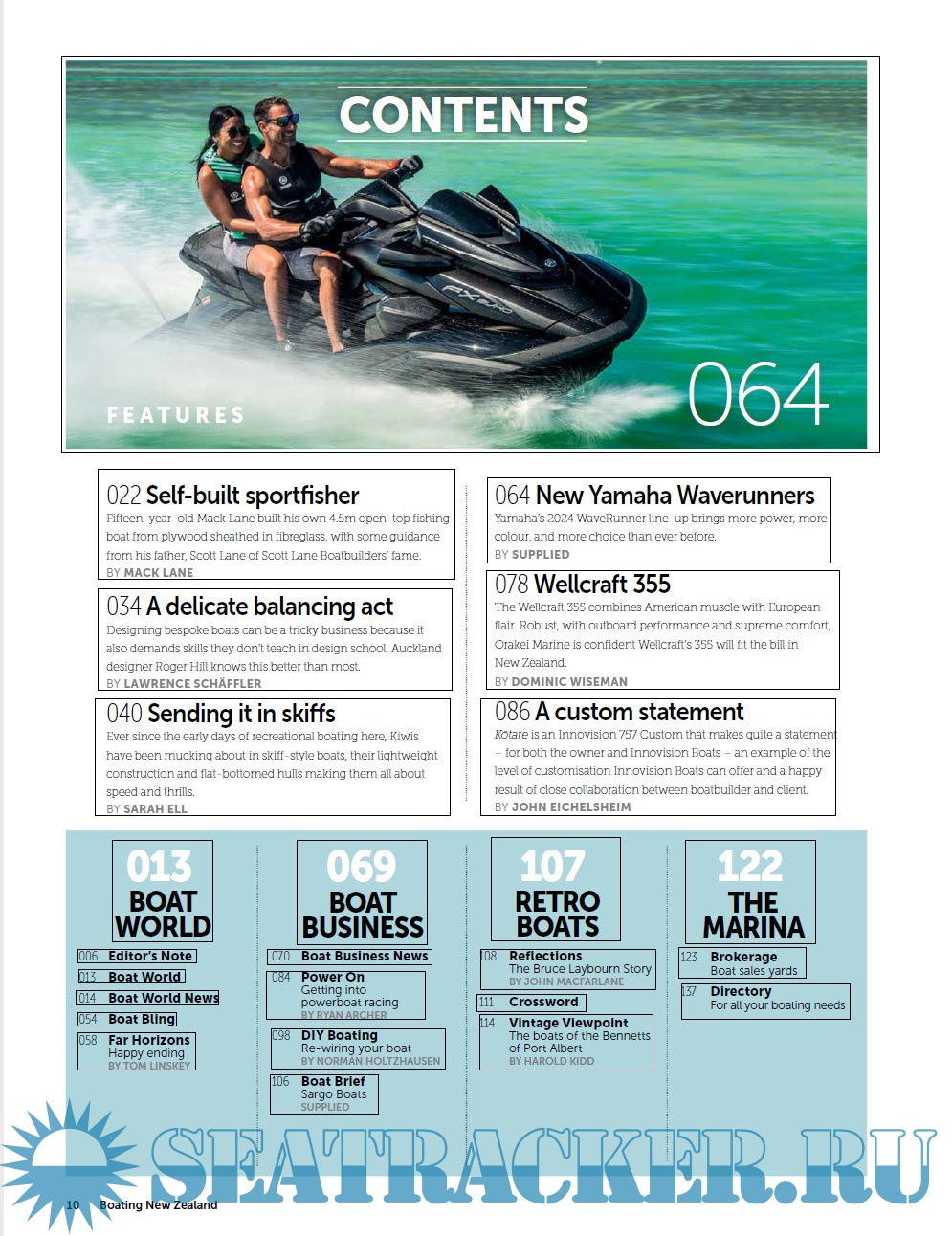Description: Boating NZ is New Zealand's premier marine title devoted to putting its readers behind the wheel of the latest trailerboats, yachts and launches to hit the market. It inspires with practical content and cruising adventures, leads the fleet with its racing coverage and is on the pulse of the latest maritime news and innovation.