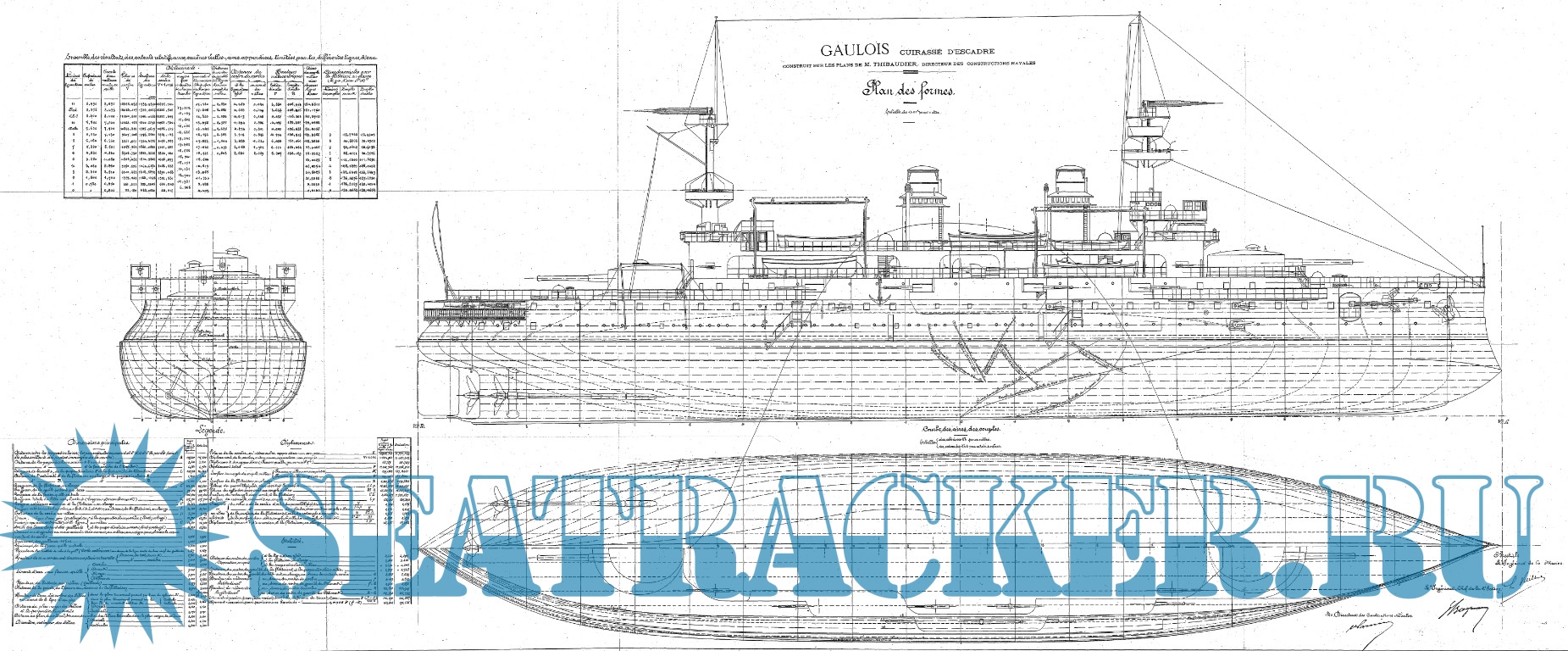 31 лист архивных чертежей броненосца GAULOIS 1896 год