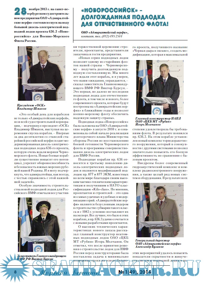 Описание: Информационные, аналитические, научно-технические и исторические статьи по морской технике и технологиям, экологической безопасности судостроения и судоходства, освоению океана и шельфа, безопасности мореплавания, истории флота и мореплаваний, морскому бизнесу и праву.