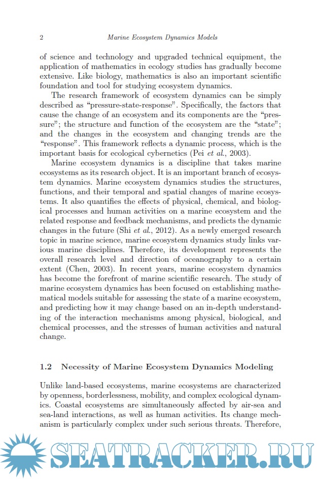 Year: 2023 Language: english Author: Honghua Shi, Chengcheng Shen, Yongzhi Liu Genre: Technical book Publisher: World Scientific Pub Co Inc Format: PDF Quality: eBook Pages count: 362 Description: This book presents the fundamental theories, methodologies and case studies of marine ecosystem modeling with a special focus on marine ecological dynamics that could provide scientists and researchers with a stabile and reliabile technical framework to study marine life and their developments. This book also clarifies the research objective and model classification methods of marine ecosystem dynamics research and analyzes the key marine ecological processes that affect modeling. The technical framework for improving the performance of modeling is also proposed, and the latest progress in research, as well as existing difficulties and challenges in end-to-end dynamics models are reviewed and analyzed. A dimensionality reduction theorem is established and derived for analyzing the stability of the solutions of a class of self-conserving marine ecosystem dynamic models. Also included in this work are several new types of marine ecosystem dynamics models constructed by modern computing methods - including artificial neural networks, cellular automata, and statistical dynamics - and case studies. This book is a suitable reference for professional and technical personnel, managers and graduate students specializing in the evolution mechanism, simulation, predication and regulation of marine ecosystems.