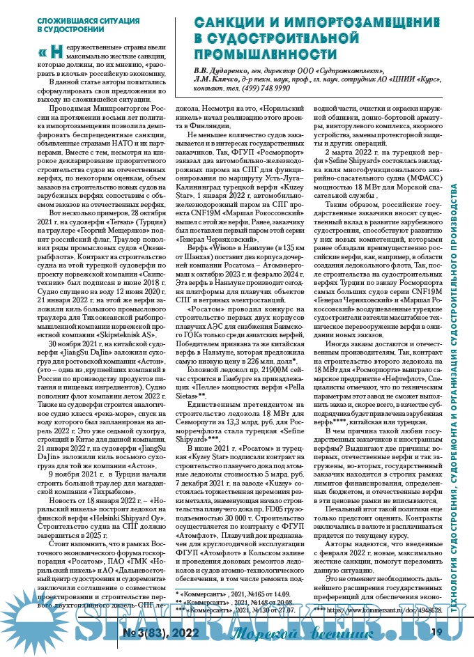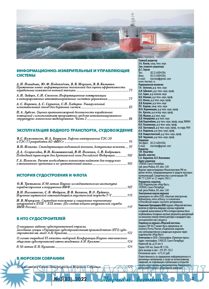 Описание: Информационные, аналитические, научно-технические и исторические статьи по морской технике и технологиям, экологической безопасности судостроения и судоходства, освоению океана и шельфа, безопасности мореплавания, истории флота и мореплаваний, морскому бизнесу и праву.
