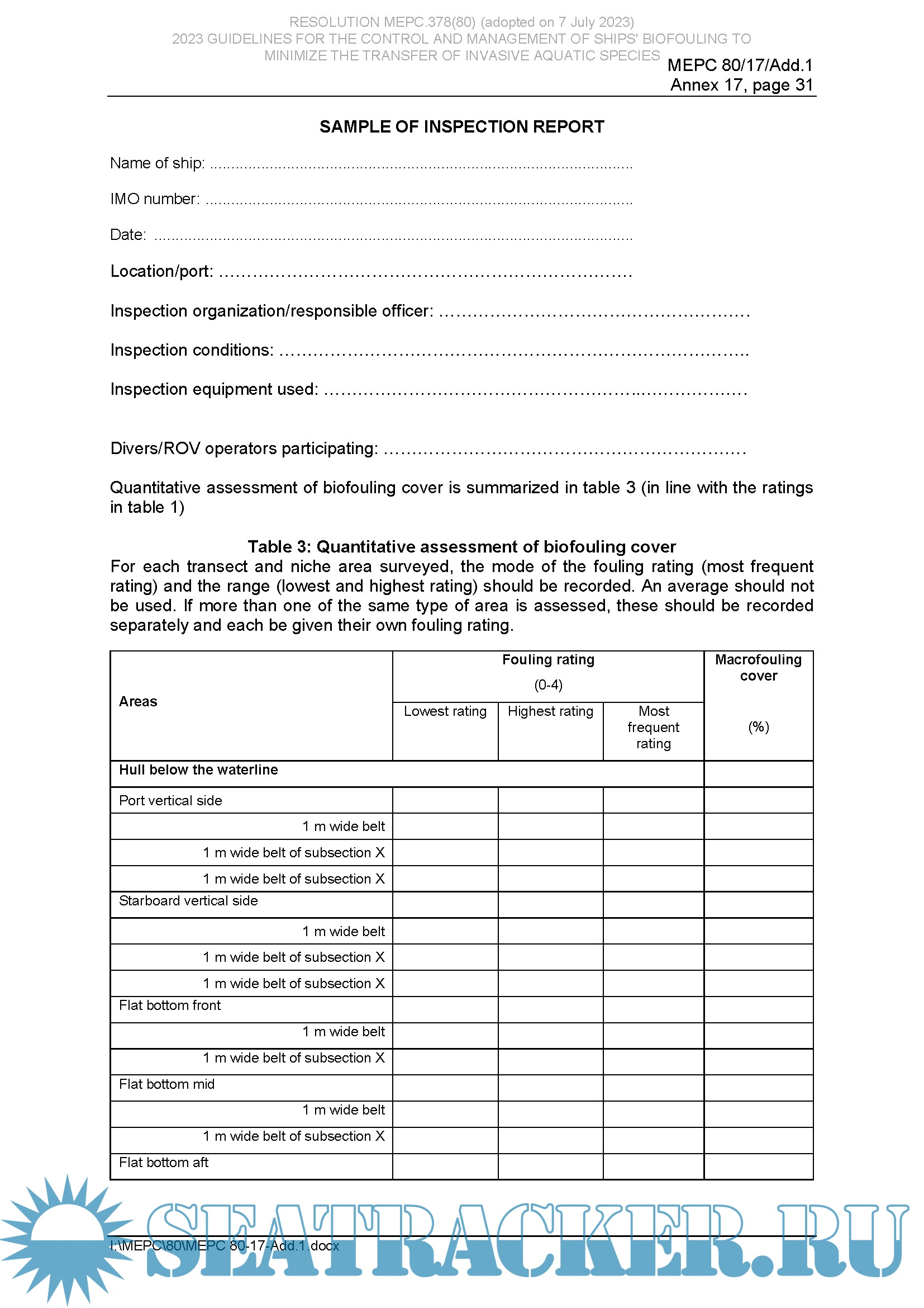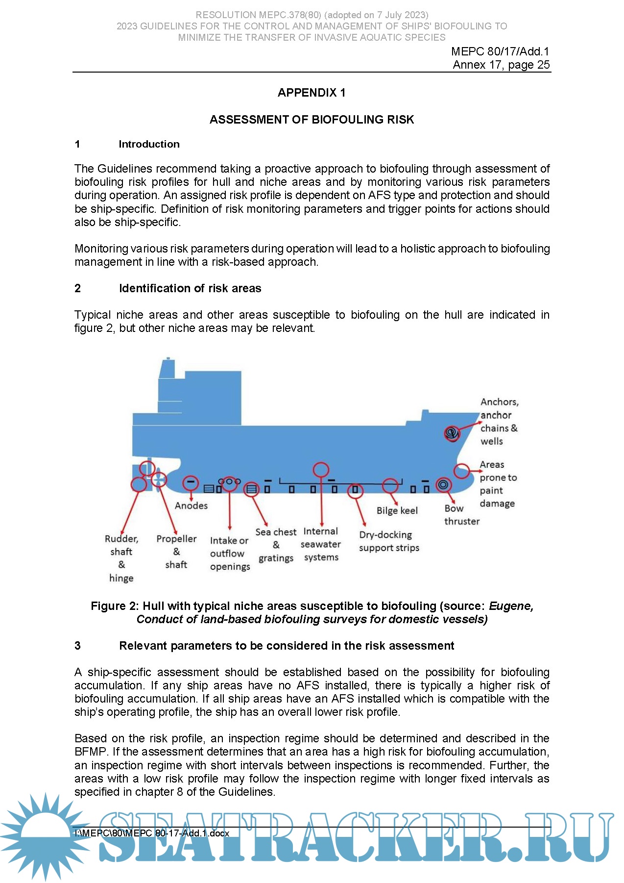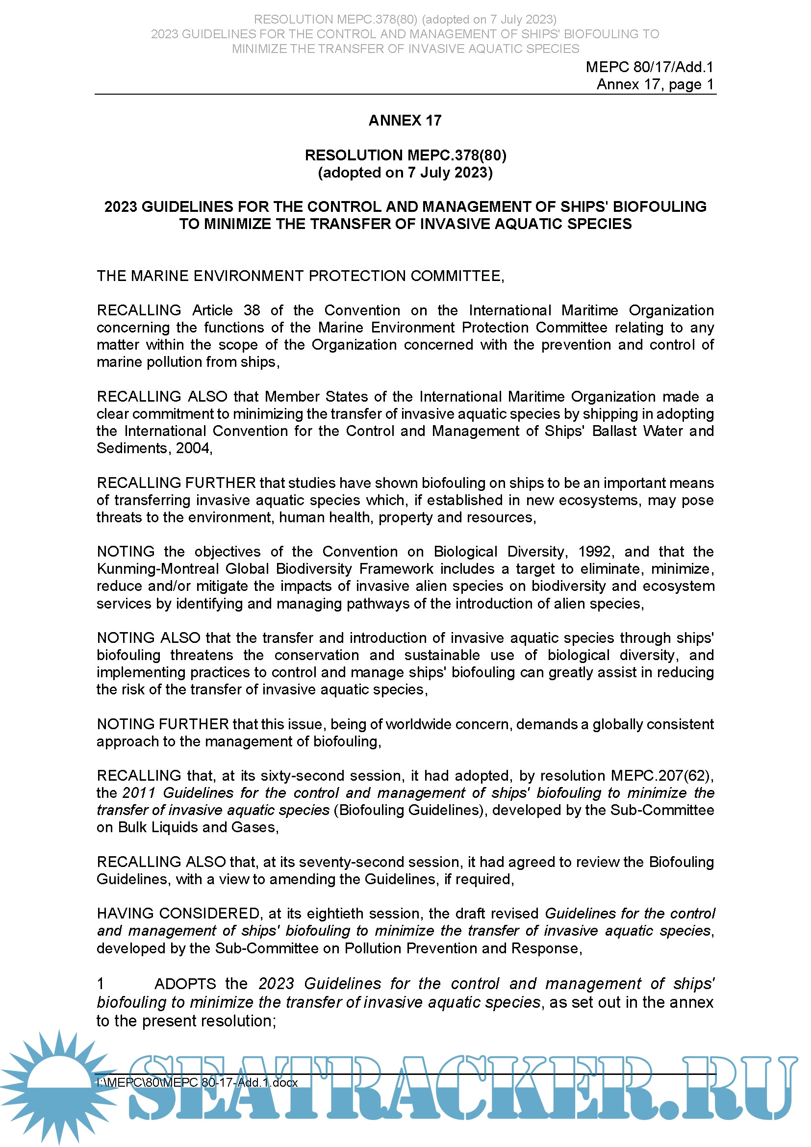 Description: The 2023 Guidelines for the control and management of ships' biofouling to minimize the transfer of invasive aquatic species (Biofouling Guidelines) (resolution MEPC.378(80)) are intended to provide a globally consistent approach to the management of biofouling, which is the accumulation of various aquatic organisms on ships’ hulls. The Biofouling Guidelines were originally adopted by the Marine Environment Protection Committee (MEPC) at its sixty-second session in July 2011 and were the result of three years of consultation between IMO Member States; following a thorough review that also took three years, the revised Guidelines were adopted by the MEPC at its eightieth session in July 2023. The Biofouling Guidelines represent a decisive step towards reducing the transfer of invasive aquatic species by ships.