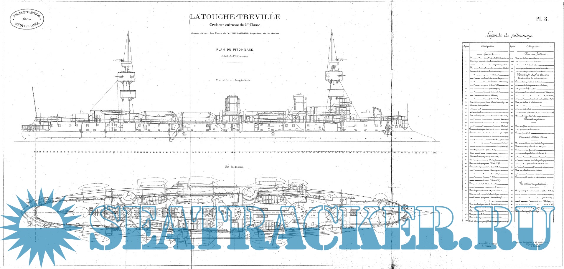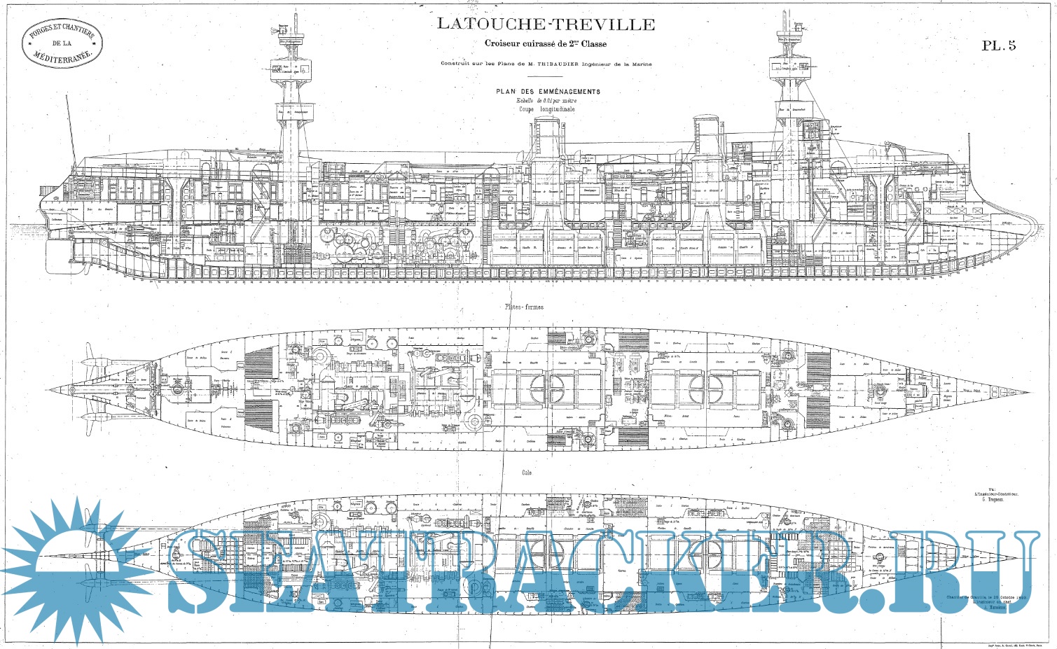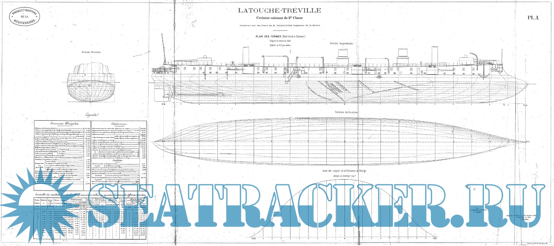 Архивные чертежи крейсера 2-го ранга LA TOUCHE TREVILLE 1892 год (Франция)