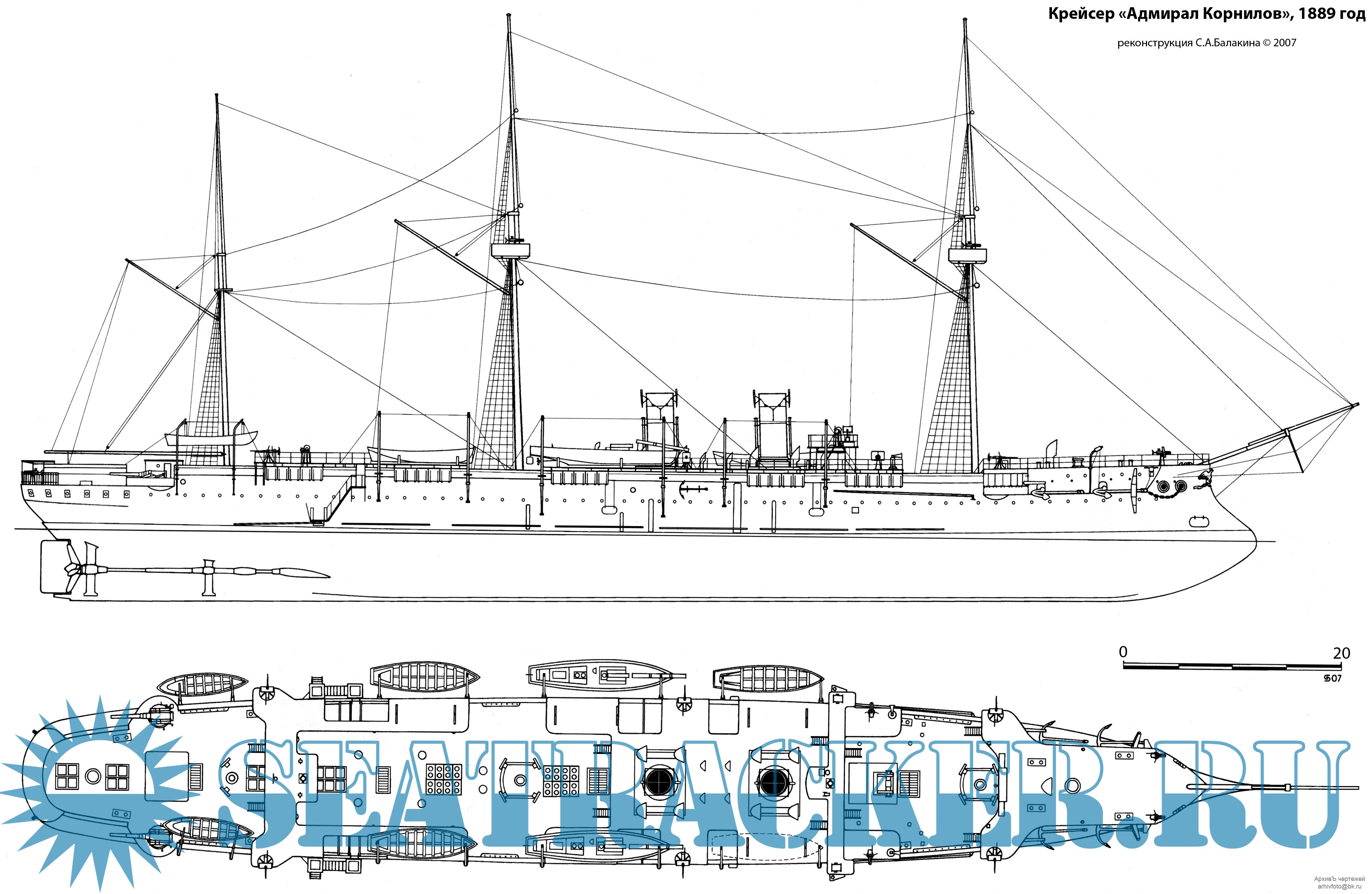 Чертежи бронепалубного крейсера 1-го ранга "Адмирал Корнилов" 1889 год