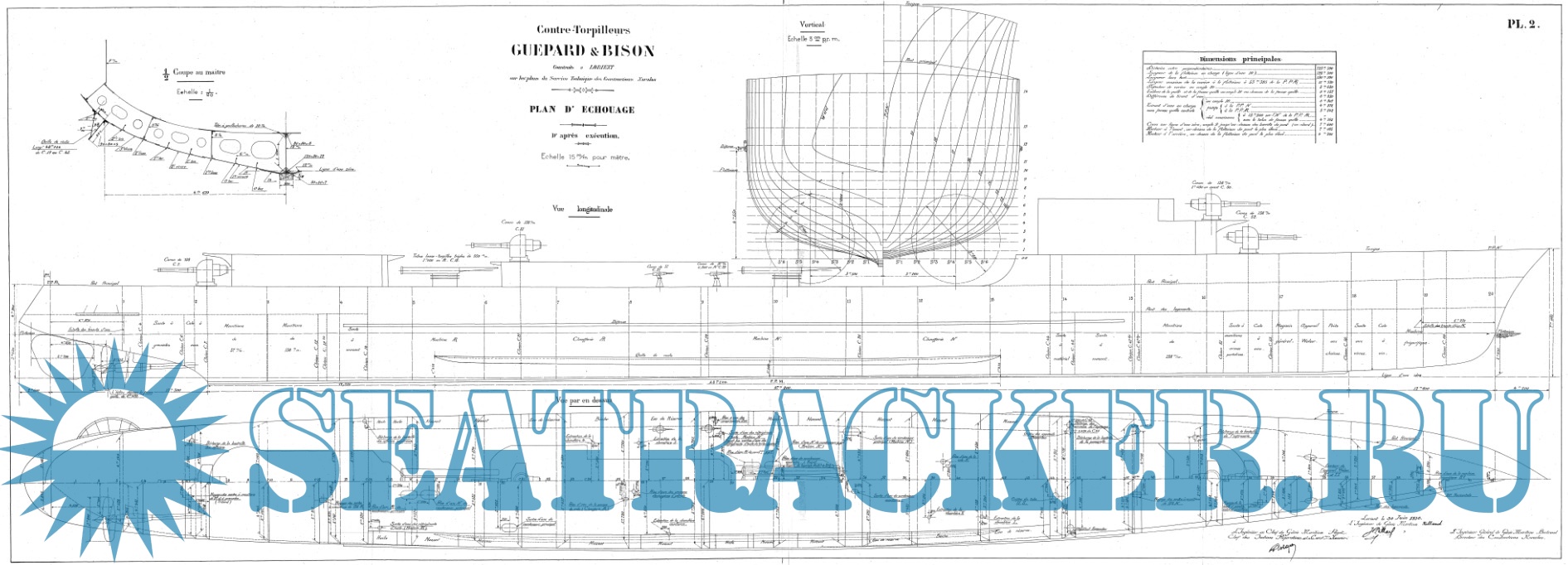 Архивные чертежи французского эскадренного миноносца (лидер) LE FANTASQUE 1934 год - нет данных…