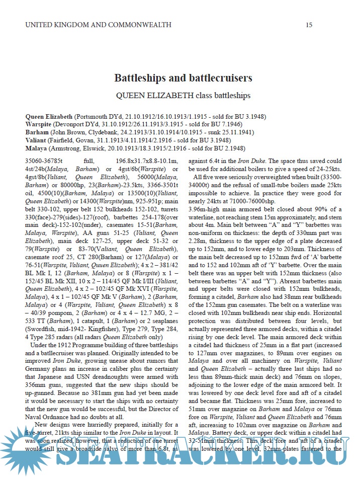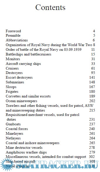 Description: This book, the first in the "Fighting ships of World War Two" series, contains reference information about all fighting ships and boats of Royal Navy and Navies of Commonwealth, served, built or ordered in days of the Second World War. Articles contain information about designing, building and service of all ships and their technical data and modernization. Texts are accompanied by many photos and side view drawings. The book also contains information about organization of Royal Navy, British ship-based airplanes and naval weapons.