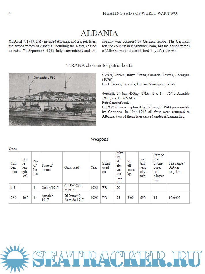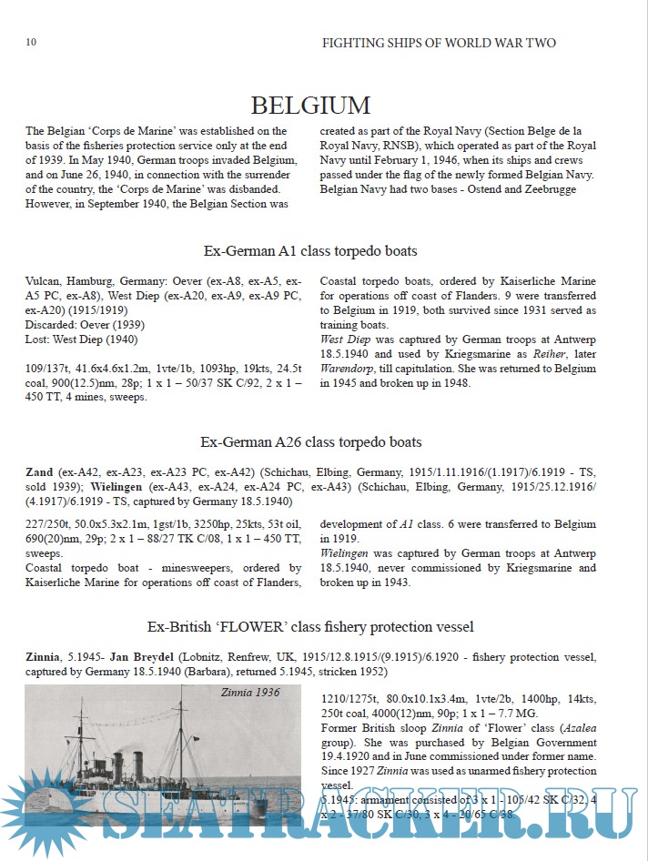 Description: This book, the eighth in the "Fighting ships of World War Two" series, contains reference information about all fighting ships and boats of European navies, not described in previous volumes, served, built or ordered in days of the Second World War. Articles contain information about designing, building and service of all ships and their technical data and modernization. Texts are accompanied by many photos and side view drawings. Volume contains information about the navies and riverine flotillas of following countries: Albania, Austria, Belgium, Bulgaria, Croatia, Czechoslovakia, Denmark, Estonia, Finland, Greece, Hungary, Iceland, Ireland, Latvia, Lithuania, The Netherlands, Norway, Poland, Portugal, Romania, Spain, Sweden, Yugoslavia.