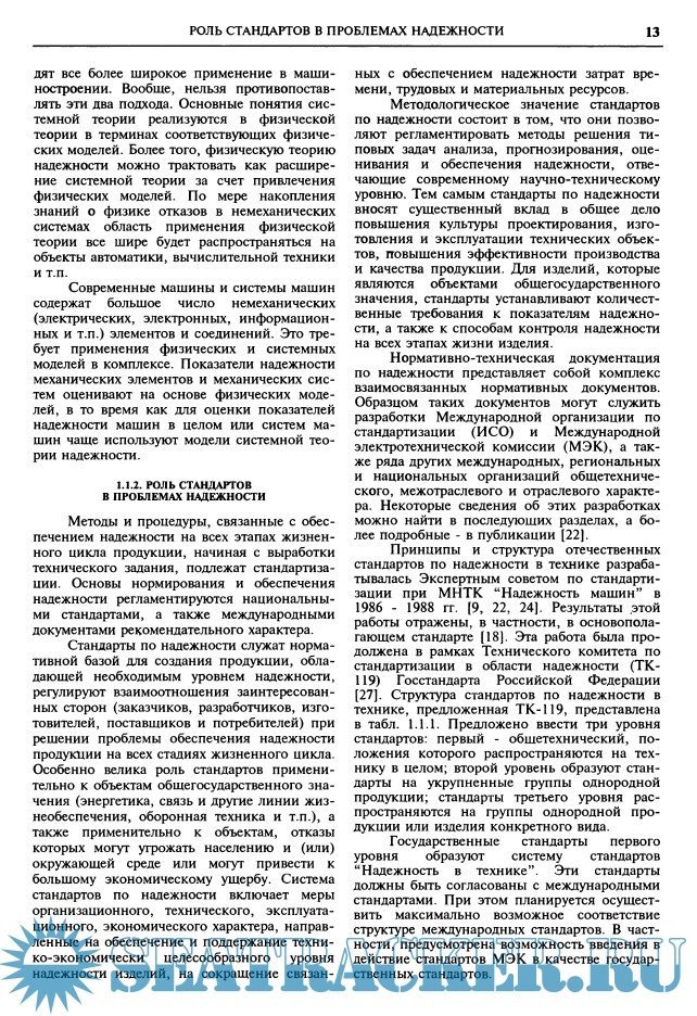 Год выпуска: 2003 Язык: русский Автор: Клюев В.В. Жанр: Энциклопедия Издательство: Машиностроение Формат: PDF Качество: Отсканированные страницы Количество страниц: 591 Описание: Даны основы теории надёжности, её математические модели, методы прогнозирования надёжности машин и перспективы развития теории надёжности, а также факторы, определяющие надёжность. Рассмотрены проблемы: исследования надёжности изделий на этапе экспериментальной отработки; обеспечения эксплуатационных свойств деталей, определяющих надёжность машин; оптимизации конструкций машин по показателям надёжности. Освещён опыт исследования и обеспечения надёжности различных сложных технических систем - атомных энергетических установок, ракетно-космической техники, самолётов, радиоэлектронной аппаратуры, автомобильного транспорта, трубопроводов для транспортирования нефти и газа.