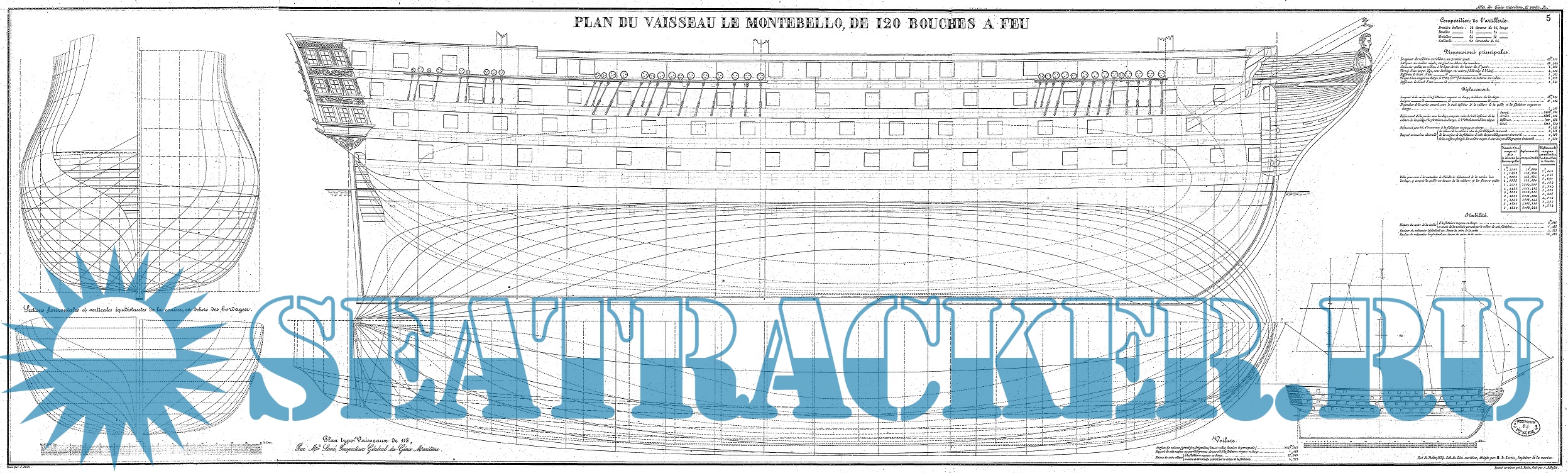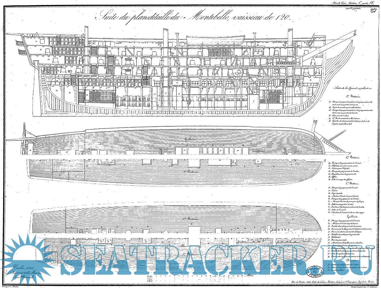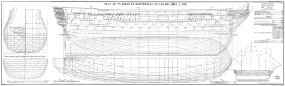 Архивные чертежи 120-пушечного французского линейного корабля Montebello 1812 год