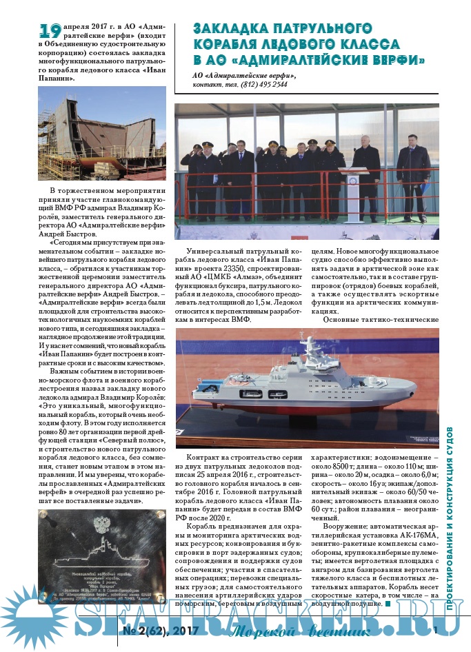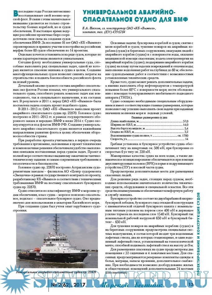 Описание: Информационные, аналитические, научно-технические и исторические статьи по морской технике и технологиям, экологической безопасности судостроения и судоходства, освоению океана и шельфа, безопасности мореплавания, истории флота и мореплаваний, морскому бизнесу и праву.