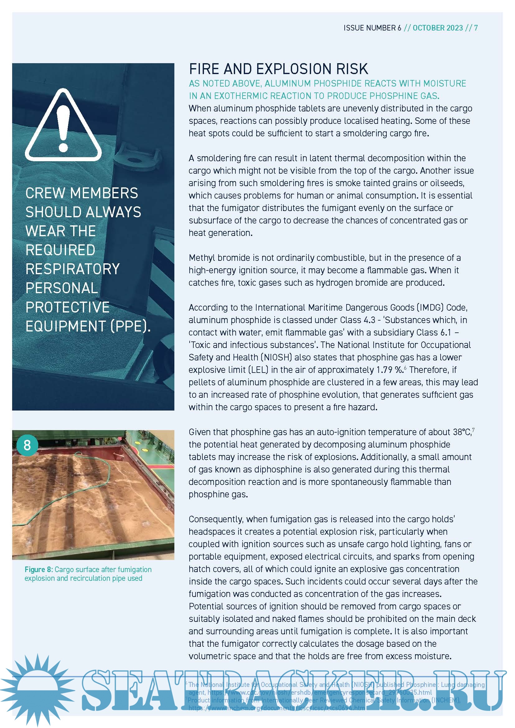 In this article highlighted the importance of understanding the risks associated with fumigation on board vessels. The application for in-transit fumigation should be made with the agreement of the Port State Administration, either for the fumigation being intentionally continued in sealed cargo spaces during the voyage without aeration prior to sailing, or for in-port cargo fumigation.