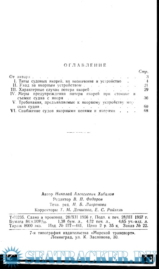 Настоящая брошюра ставит перед собой задачу оказать помощь командному составу судов в уходе за якорным устройством и предупреждении потери якорей.