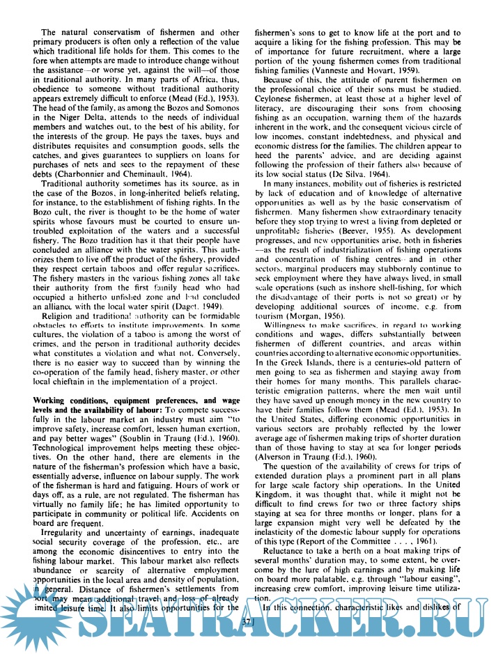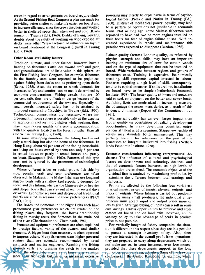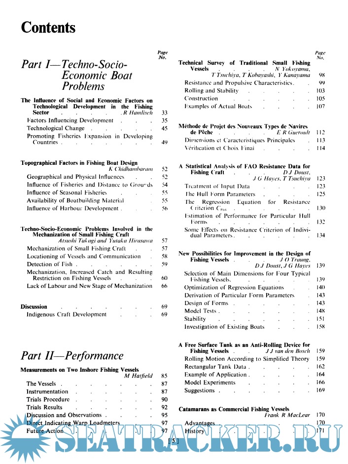 Description: The third volume of the series, based on the Congress of Fishing Vessels of the Food and Agriculture Organization, held in Gothenburg, completes an unprecedented overview of issues related to fishing vessels in different parts of the world. The six sections covering the main coastal vessels include technical, social and economic problems related to boats, operational characteristics, materials, construction, design and development. Thus ends the trilogy, which together is an amazing library of marine architecture and literature on fishing operations. Contains a summary in French and Spanish.