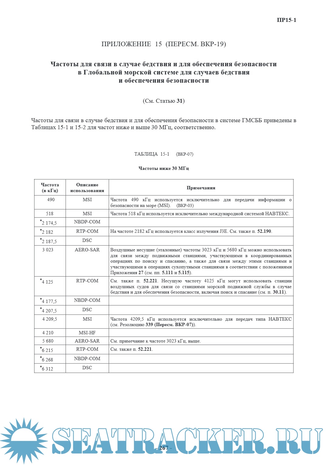 Регламент радиосвязи ITU (Приложения)