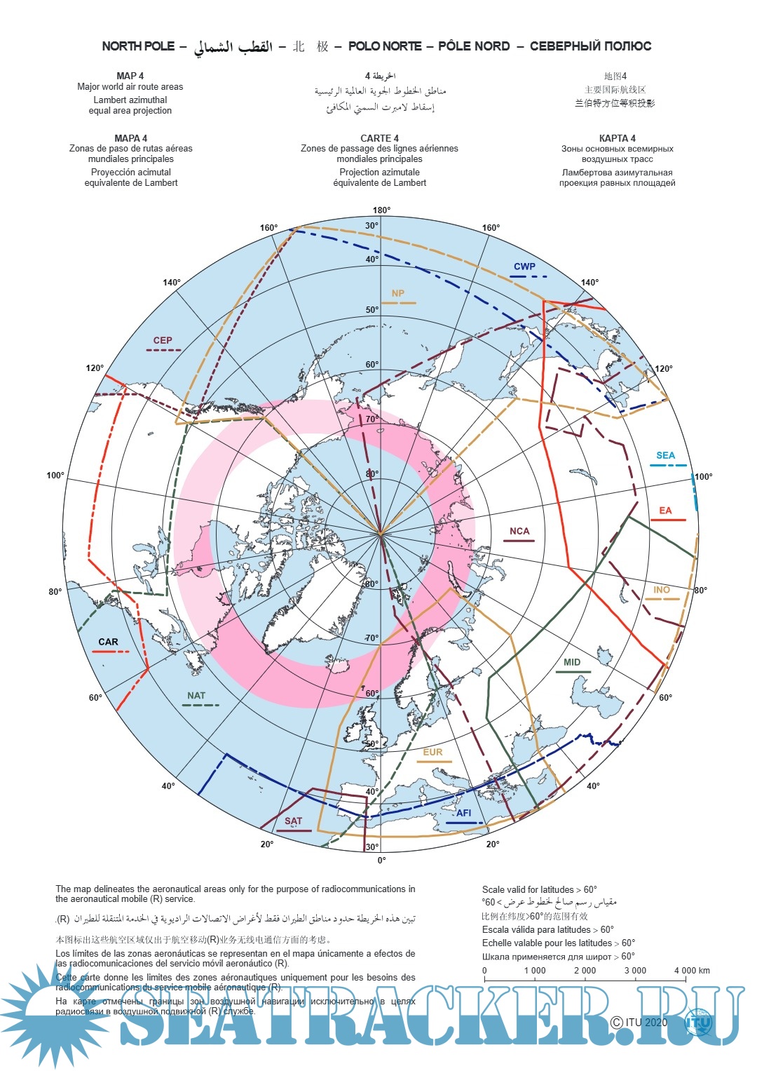 1. Зоны основных всемирных воздушных трасс. 2. Зоны региональных и национальных воздушных трасс. 3. Зоны выделения и приема VOLMET. 4. Северный полюс. 5. Южный полюс. И др.