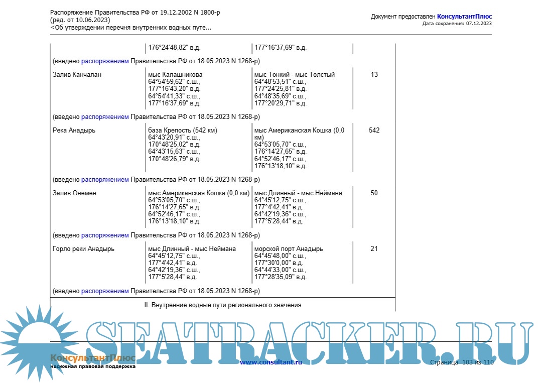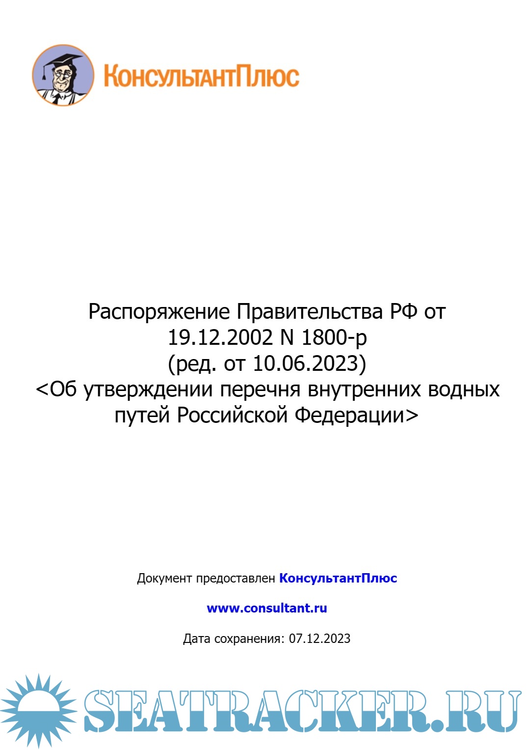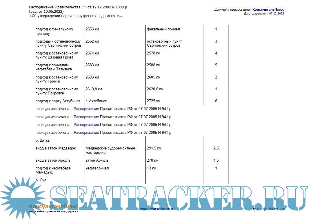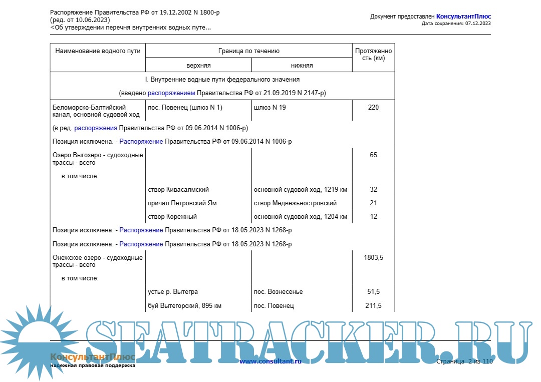 Описание: Распоряжение Правительства РФ от 19.12.2002 N 1800-р (ред. от 10.06.2023) "Об утверждении перечня внутренних водных путей Российской Федерации".