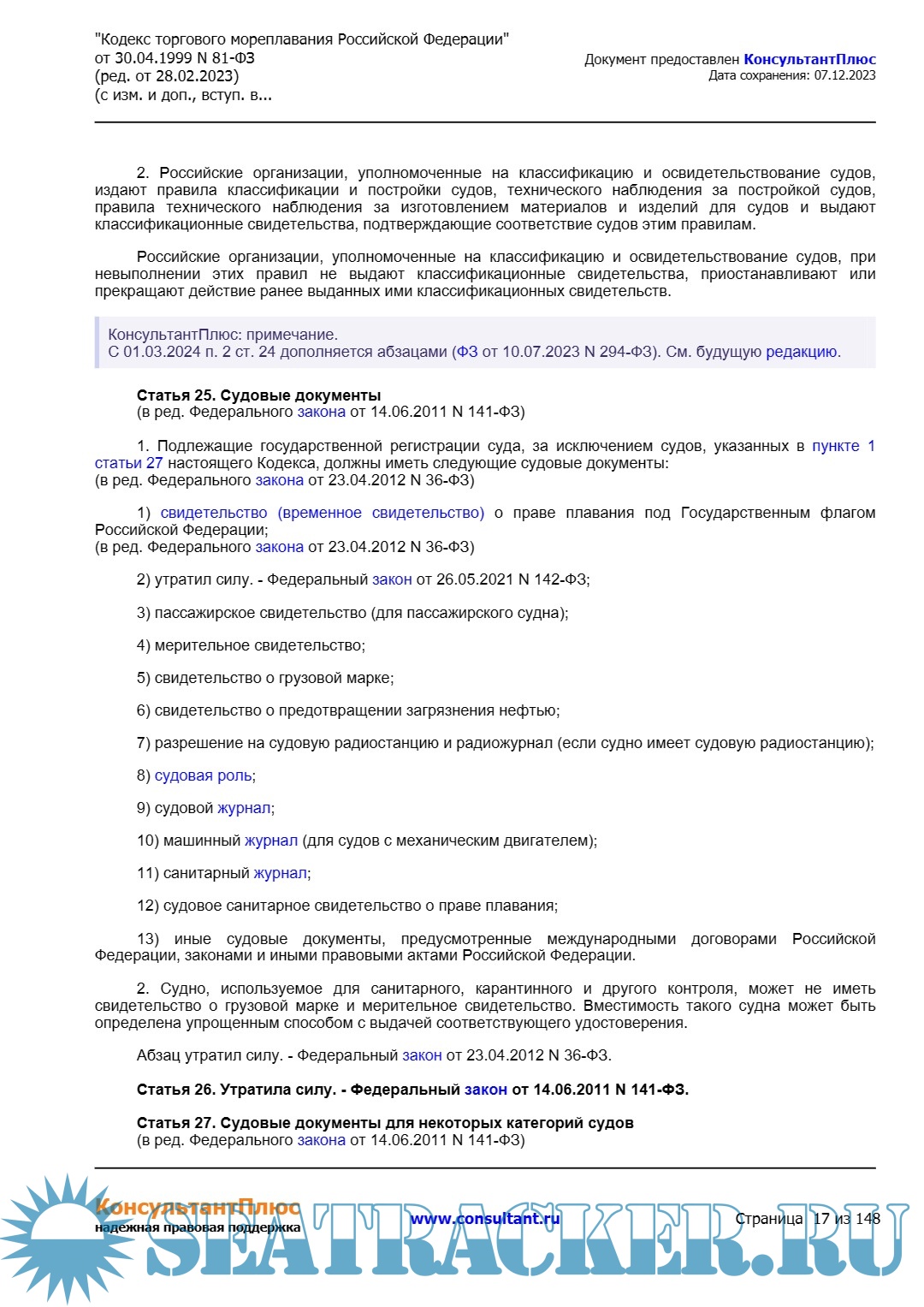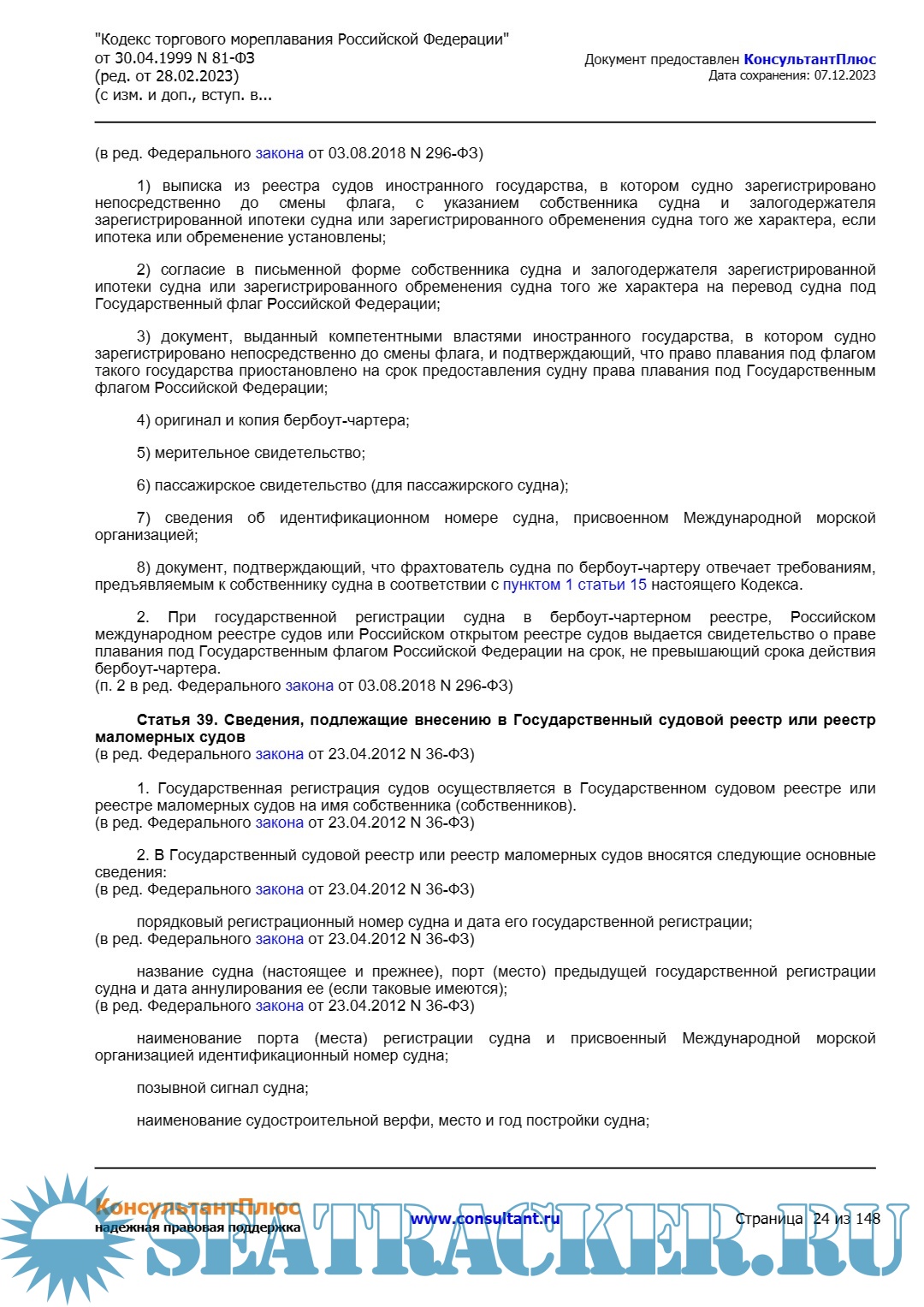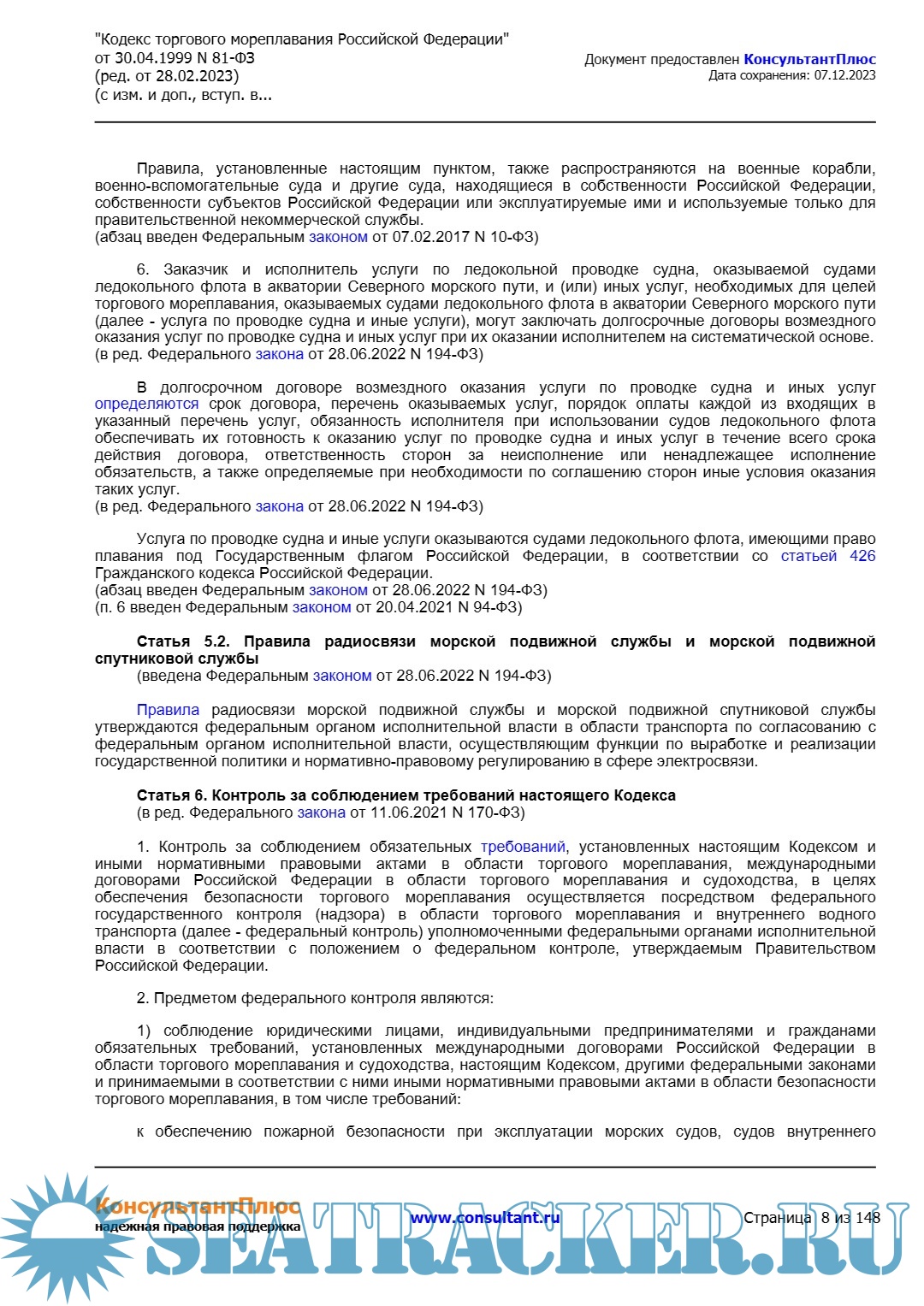 Кодекс торгового мореплавания Российской Федерации (ред. от 28.02.2023)