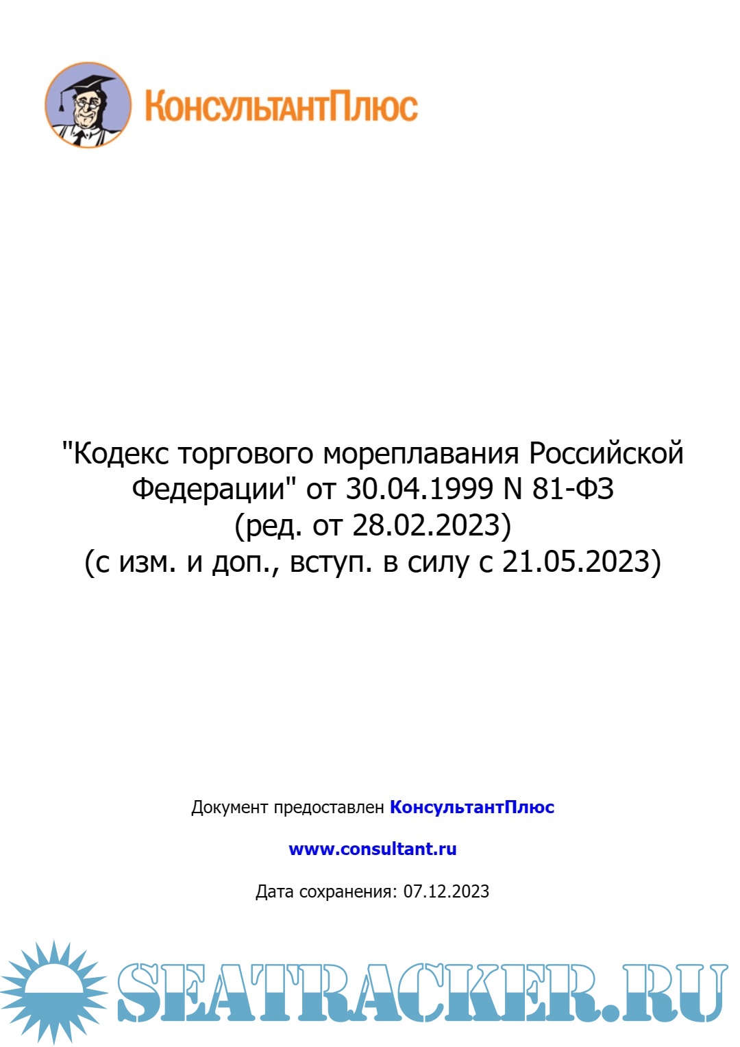 Описание: "Кодекс торгового мореплавания Российской Федерации" от 30.04.1999 N 81-ФЗ (ред. от 28.02.2023) (с изм. и доп., вступ. в силу с 21.05.2023).