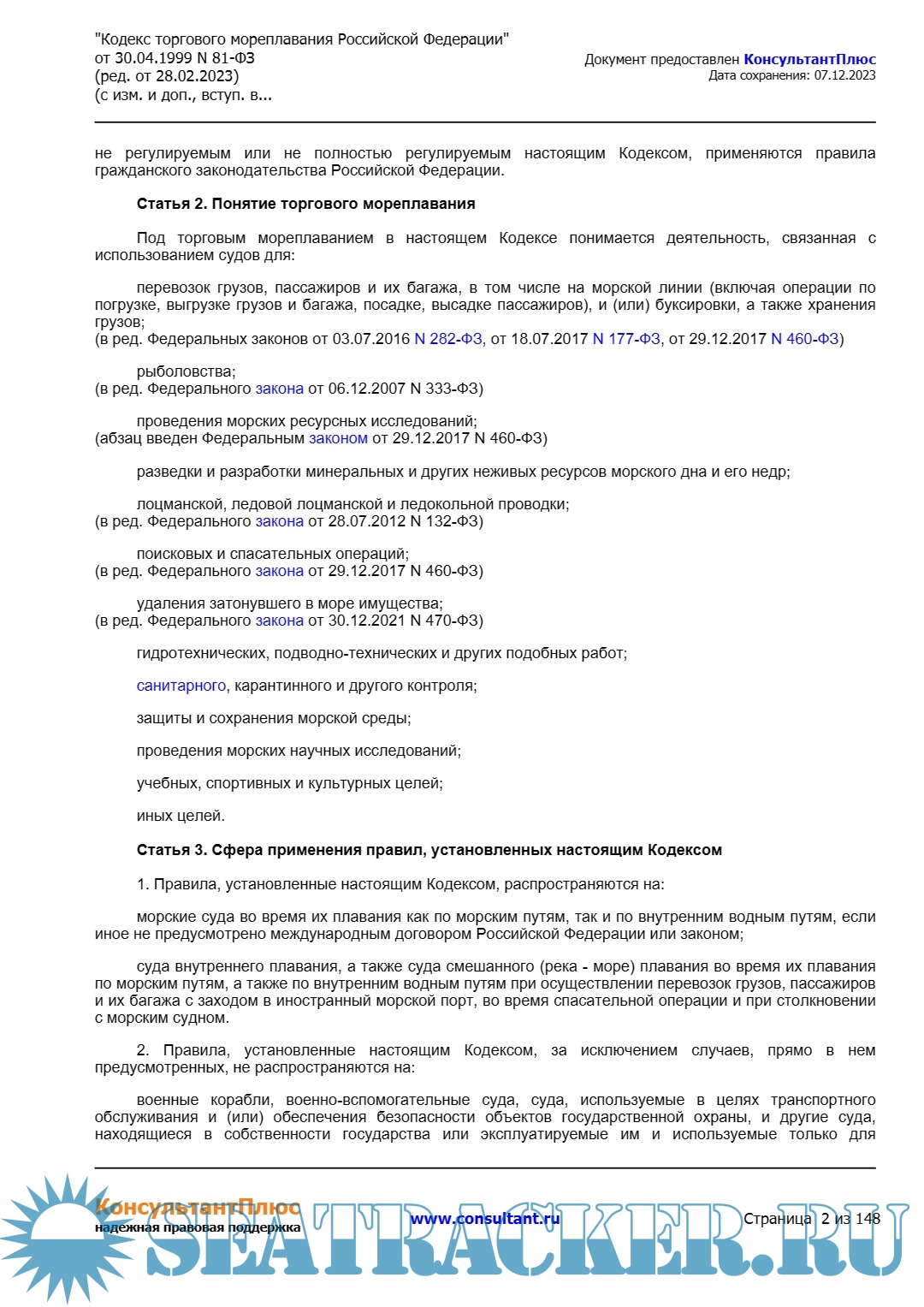 Статья 2. Понятие торгового мореплавания