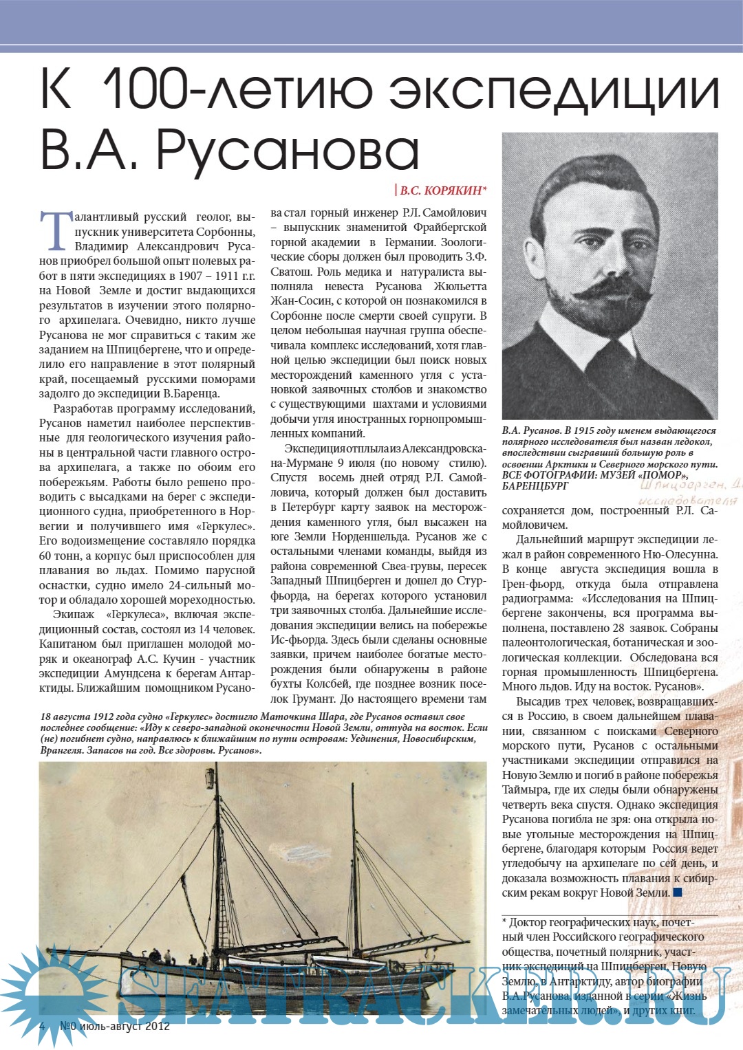 Описание: С этого номера начинает свой отсчет пути журнал «Русский вестник Шпицбергена». Точка этого отсчета – «нулевой километр» всех дорог Арктики, архипелаг Шпицберген. Выход нашего издания совпал с юбилейным годом – 100-летием трех русских арктических экспедиций Г.Брусилова, В.Русанова и Г.Седова. Экспедиции вышли из Архангельска – исторического центра поморской культуры, откуда за много веков до экспедиции В.Баренца отправлялись к берегам Шпицбергена русские поморы. Экспедиции Русанова, с именем которого связано развитие российской угледобычи на архипелаге, и поморским традициям русского судоходства посвящен пилотный номер «Русского вестника Шпицбергена». Русановские места на Шпицбергене в этом году стали центром притяжения не только мореплавателей, прошедших по мемориальному маршруту экспедиции 1912 года, но и путешественников-пешеходов. В эпоху,