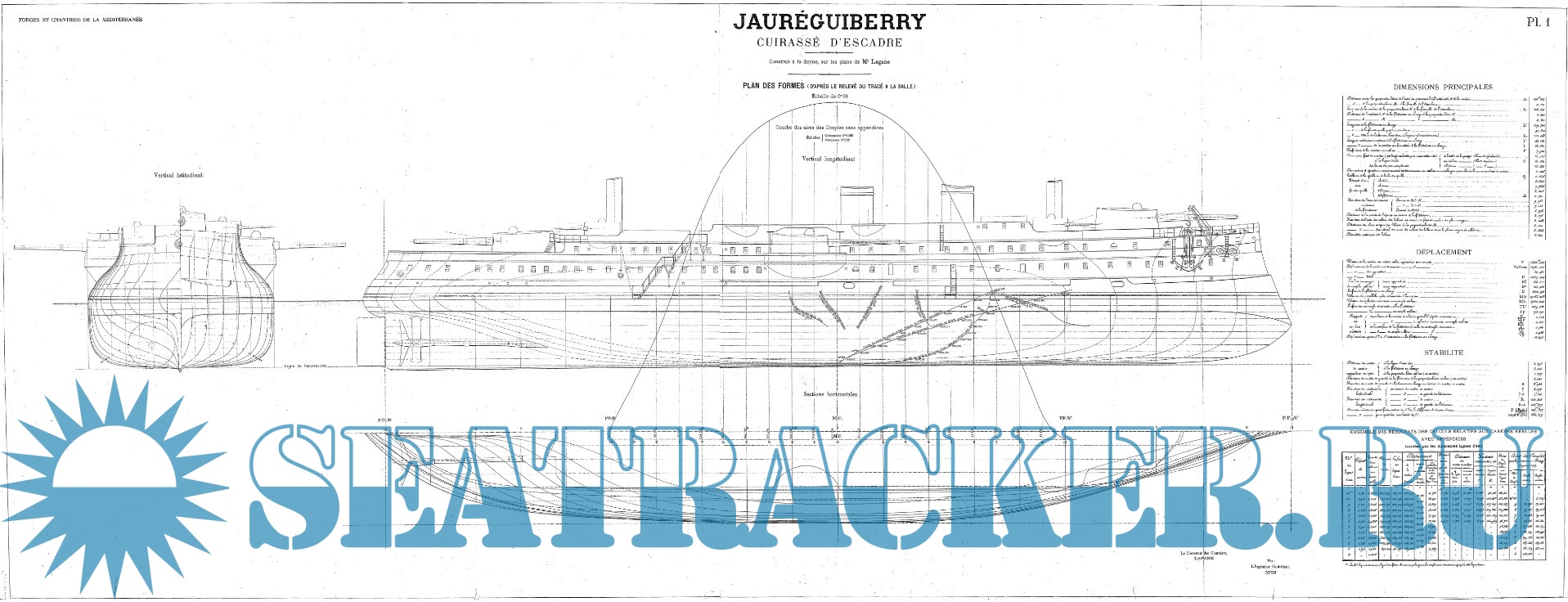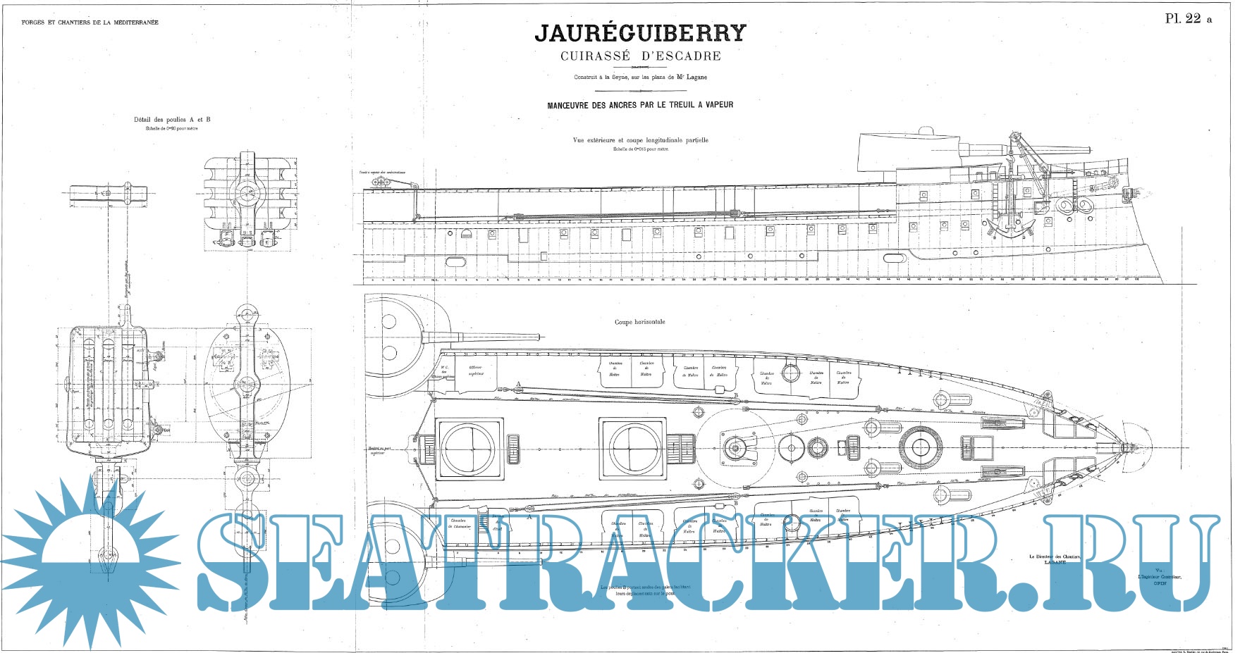 Архивные чертежи броненосца JAUREGUIBERRY (Франция) 1893 год