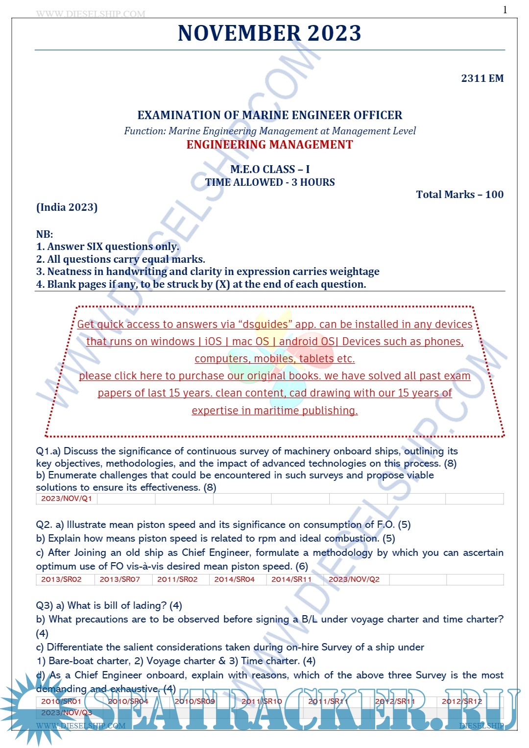 Year: 2023 Language: english Author: Dieselship Format: PDF Quality: eBook Pages count: 141 Description: M.E.O. Class I Question Paper set for Mercantile Marine Department (MMD), D.G. Shipping India Exams.