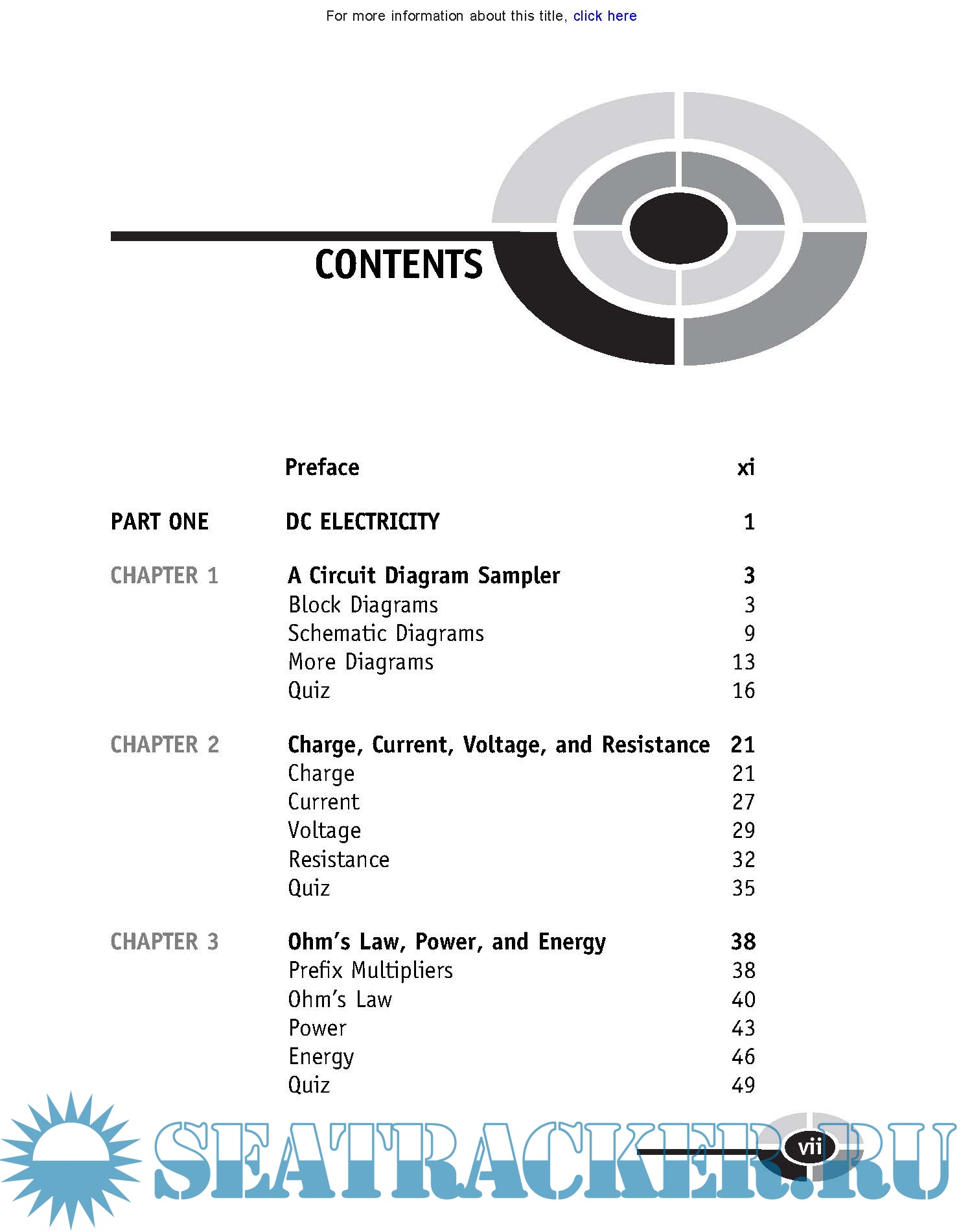 Year: 2005 Language: english Author: STAN GIBILISCO Genre: Handbook Publisher: McGRAW-HILL Format: PDF Quality: eBook Pages count: 354 Description: This book is for people who want to get acquainted with the concepts of elementary electricity and magnetism, without taking a formal course. It can serve as a supplemental text in a classroom, tutored, or home-schooling environment. It can also be useful for career changers who want to become familiar with basic electricity and magnetism. This course is for beginners, and is limited to elementary concepts. The treatment is mostly qualitative. There’s some math, but it doesn’t go deep. If you want to study electronics following completion of this book, Electronics Demystified and Teach Yourself Electricity and Electronics, also published by McGraw-Hill, are recommended. This book contains many practice quiz, test, and exam questions. They are all multiple-choice, and are similar to the sort of questions used in standardized tests. There is an ‘‘open-book’’ quiz at the end of every chapter. You may (and should) refer to the chapter texts when taking them. When you think you’re ready, take the quiz, write down your answers, and then give your list of answers to a friend. Have the friend tell you your score, but not which questions you got wrong. Stick with a chapter until you get most of the answers correct.