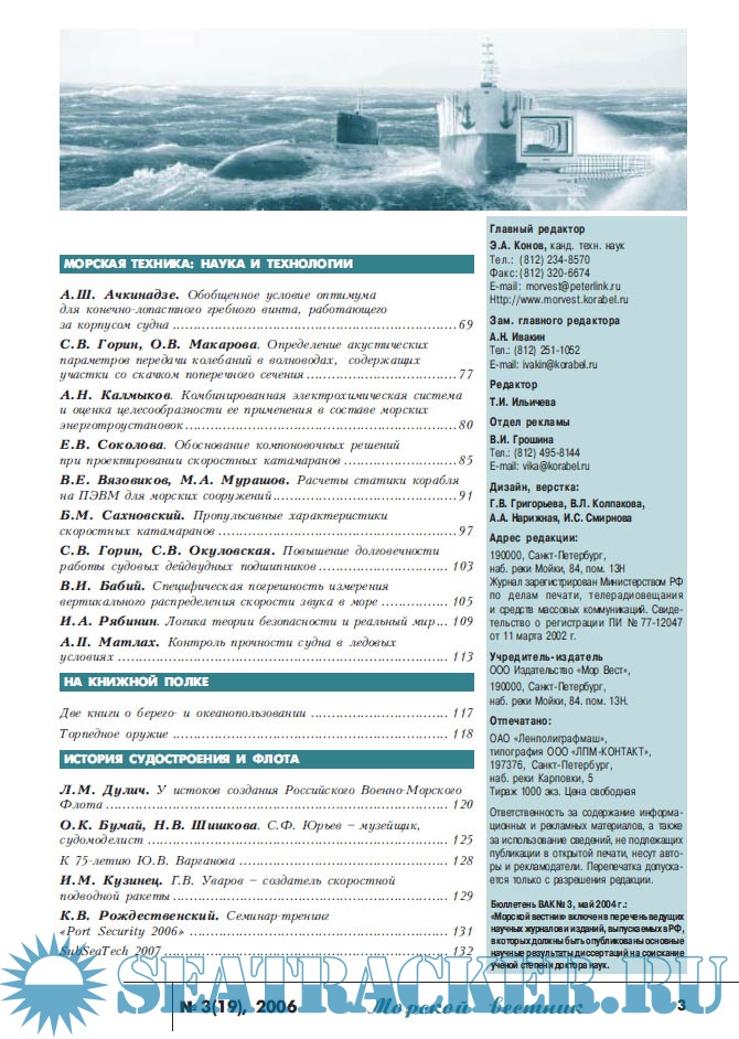 Описание: Информационные, аналитические, научно-технические и исторические статьи по морской технике и технологиям, экологической безопасности судостроения и судоходства, освоению океана и шельфа, безопасности мореплавания, истории флота и мореплаваний, морскому бизнесу и праву.