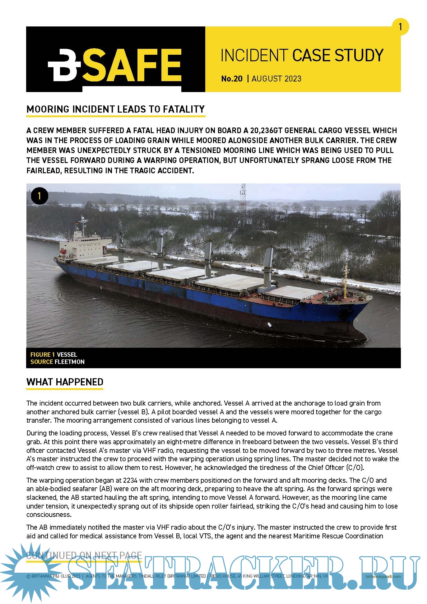 BSafe incident case study 20: mooring incident leads to fatality. Published: 22 August 2023BSafe incident case study 21: mismanagement of medical condition on board. Published: 23 November 2023