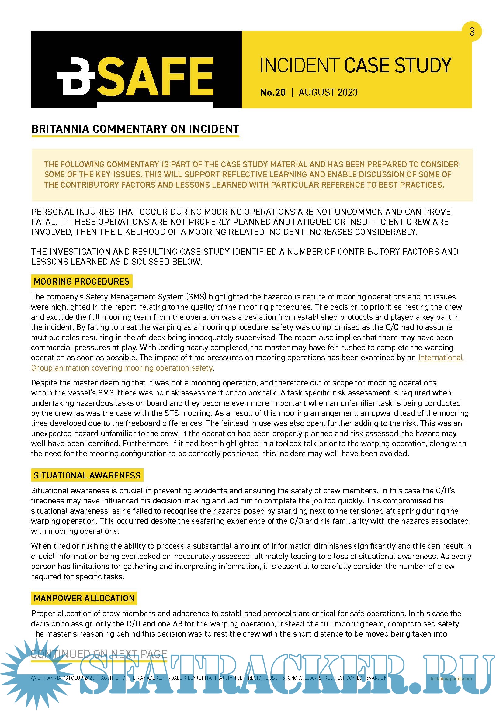 Year: 2023 Language: english Author: Britannia P&I Club Genre: Periodical (magazine) Format: PDF Quality: eBook Pages count: Multiple Description: Using case studies as a way of analysing previous incidents and identifying lessons learned which can be shared with others, is an important part of improving safety performance. Encouraging reflective learning is a key element of BSafe. Each month issuing a new BSafe Incident Case Study. These will be based on a real accident or claim, appropriately anonymised, with a summary of the key lessons learned. Reflecting on past events is recognised as an effective way of learning from experience in order to positively influence future behaviours. This will include some suggestions for possible controls that could have helped mitigate the risk by using our interpretation of a Hierarchy of Risk Controls.