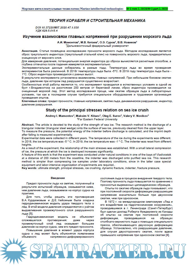 Морские интеллектуальные технологии 2020 № 1 часть 2