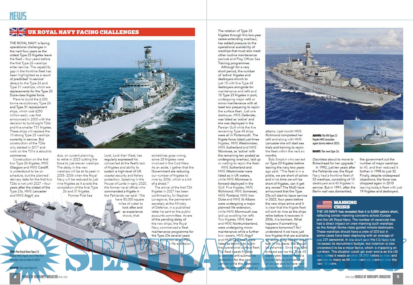 Description: This 56-page magazine will cover such battles and battleships starting with the steel-clad warships of the 1900s, up to the modern day rulers of the seas – the highly sophisticated aircraft carriers and submarines of today.We will have a Naval news section from around the world, features on famous people, conflict at sea, fascinating historical accounts and exciting places of interest that you can visit today. World of Warships will also feature some excellent naval paintings from the brushes and easels of leading Naval artists, plus superb, highly detailed, fold-out, triple gatefolds, featuring profile artworks in every issue, created by Andrew Hay.The main thrust will of course be warships, encompassing destroyers, dreadnoughts, frigates, carriers, submarines et al, and their place in global naval history.