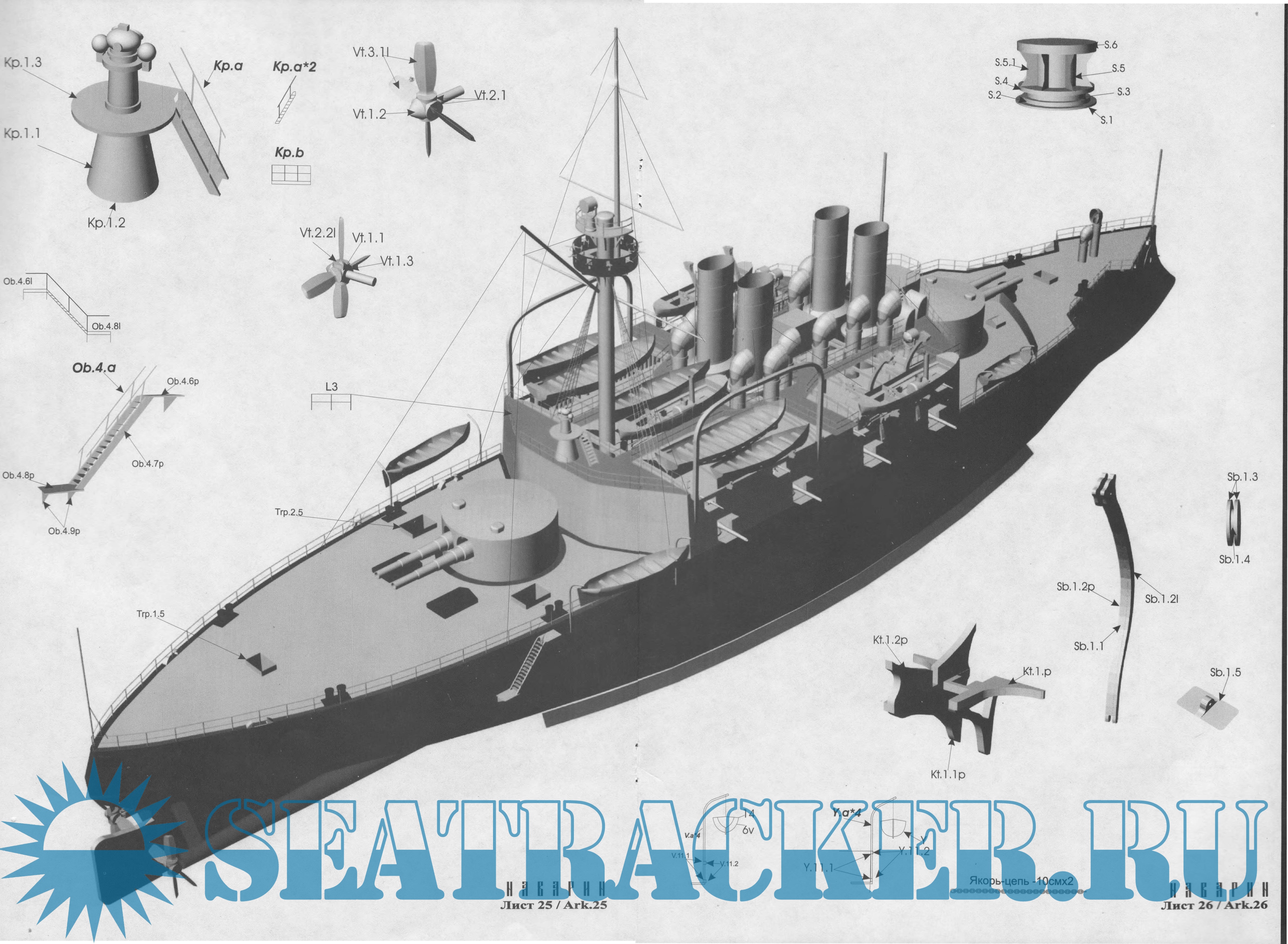 41 лист цветных выкроек и инструкций для изготовления бумажной модели эскадренного броненосца "Наварин" 1895 год в масштабе 1:200