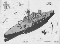Описание: 41 лист цветных выкроек и инструкций для изготовления бумажной модели эскадренного броненосца "Наварин" 1895 год в масштабе 1:200