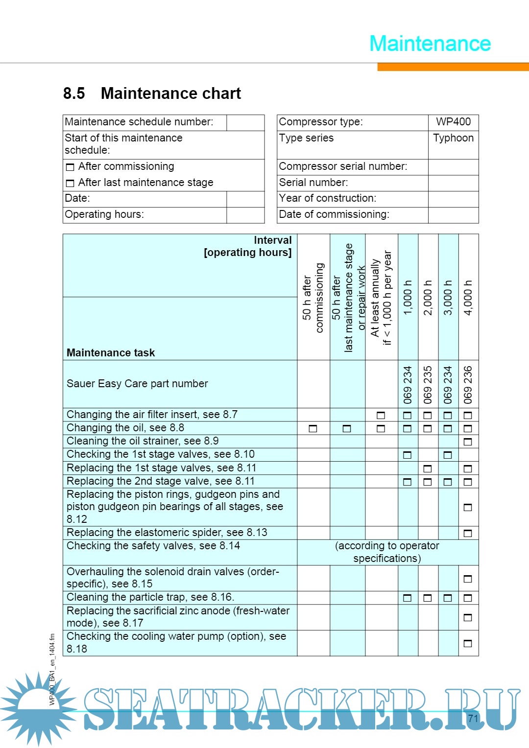 Sauer Air Compressor - WP400 Operations Manual