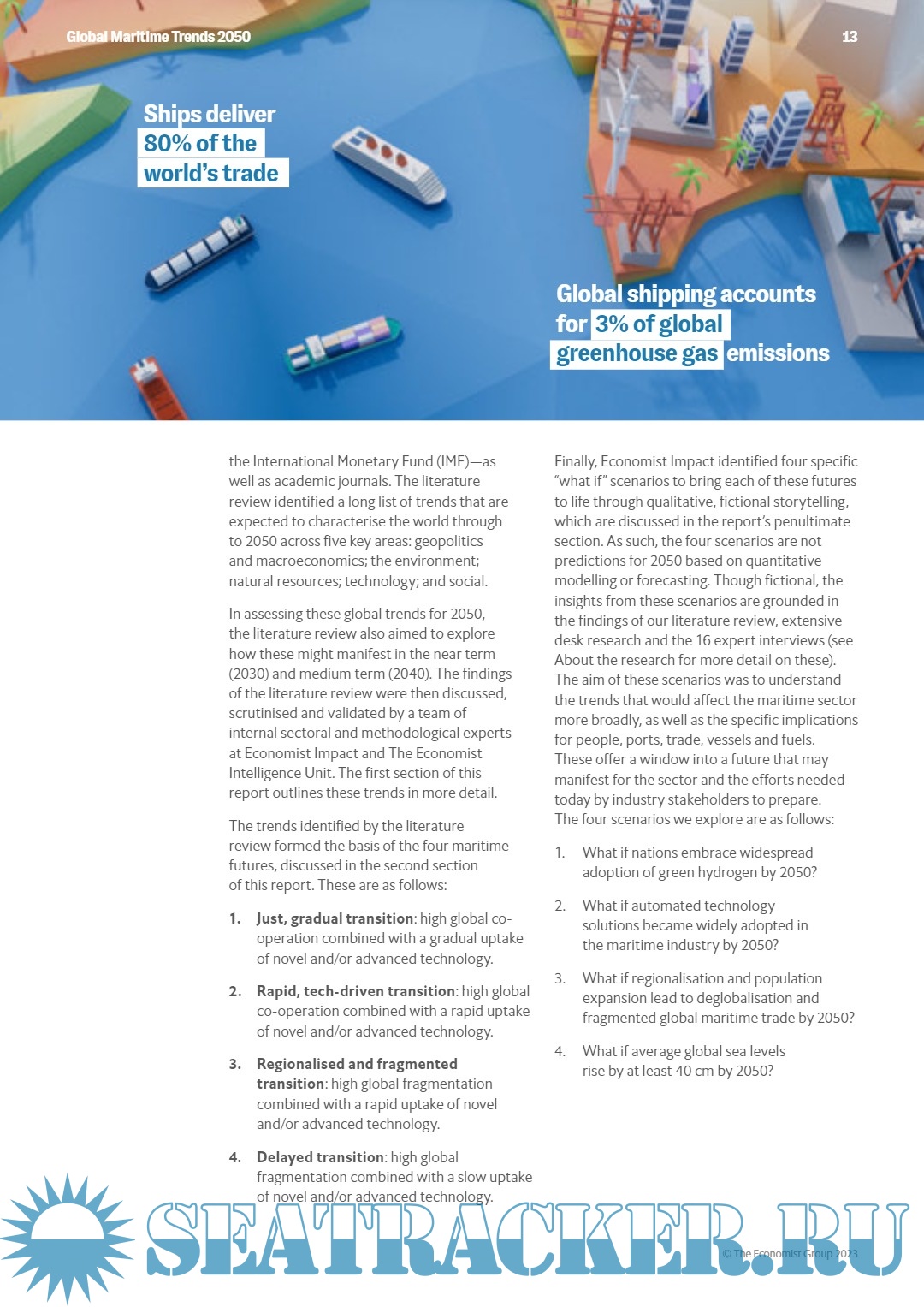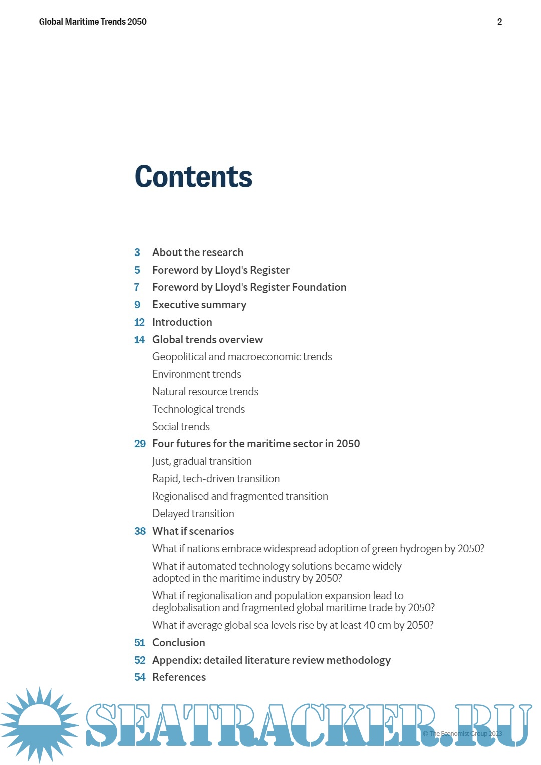 Description: Global Maritime Trends is a report by Economist Impact, commissioned by Lloyd's Register Foundation and Lloyd’s Register. Economist Impact’s research is based on a pragmatic literature review (see Appendix for a detailed methodology) and in-depth, qualitative interviews with maritime policy and industry professionals.