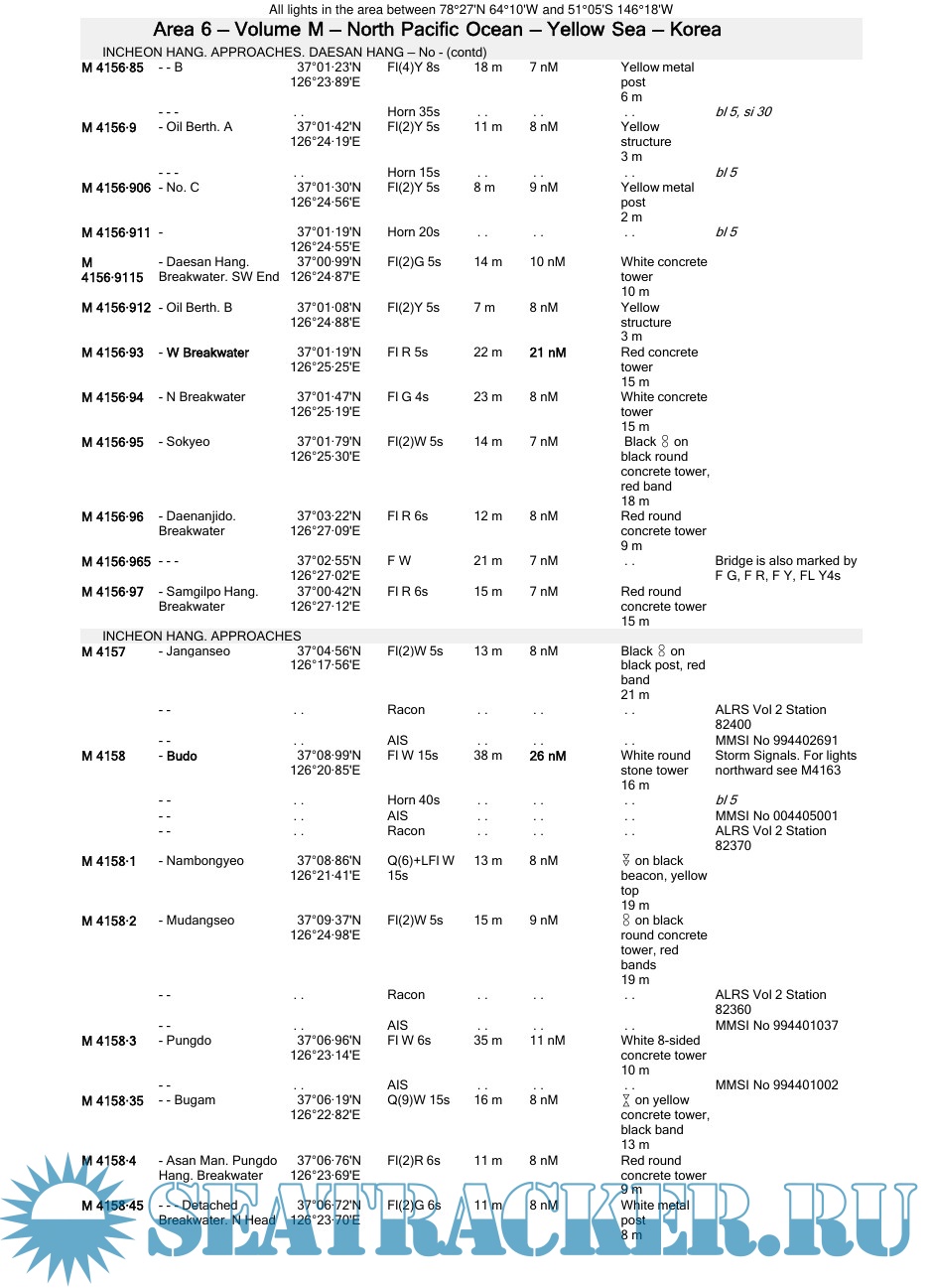 Description: Comprehensive coverage of fixed lights and fog signals of navigational significance.
