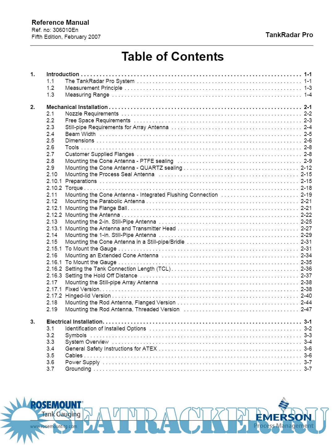 Description: Rosemount TankRadar Pro Radar Level Gauge Reference Manual list all the specification of the system and maintenance to be carried out on equipments.